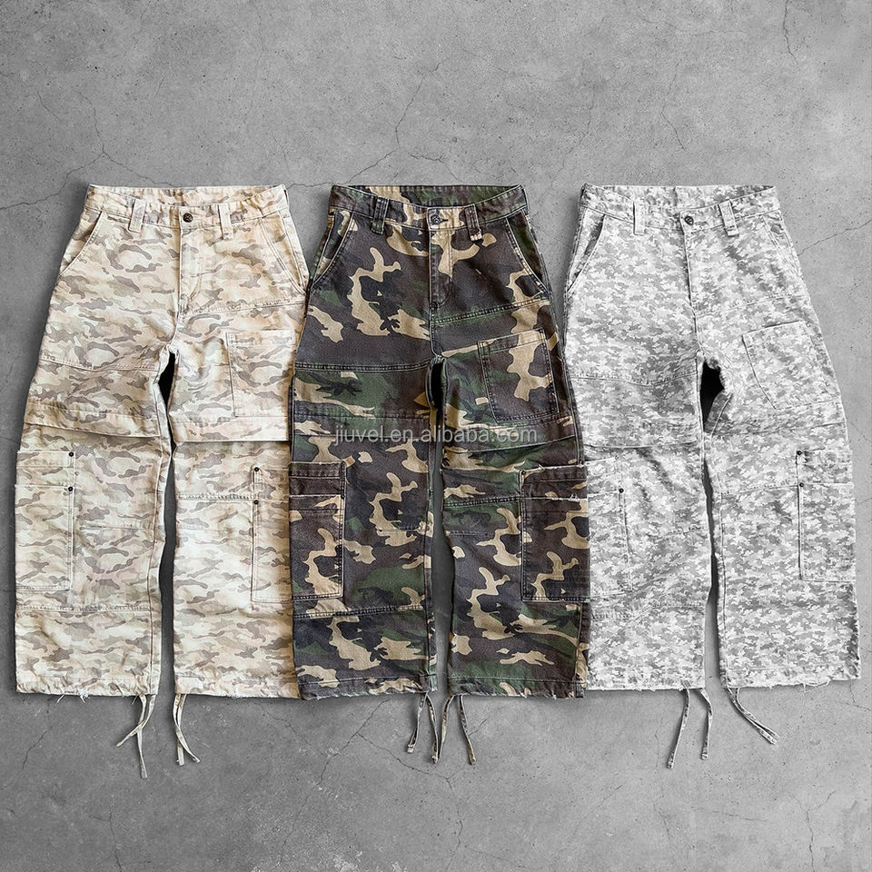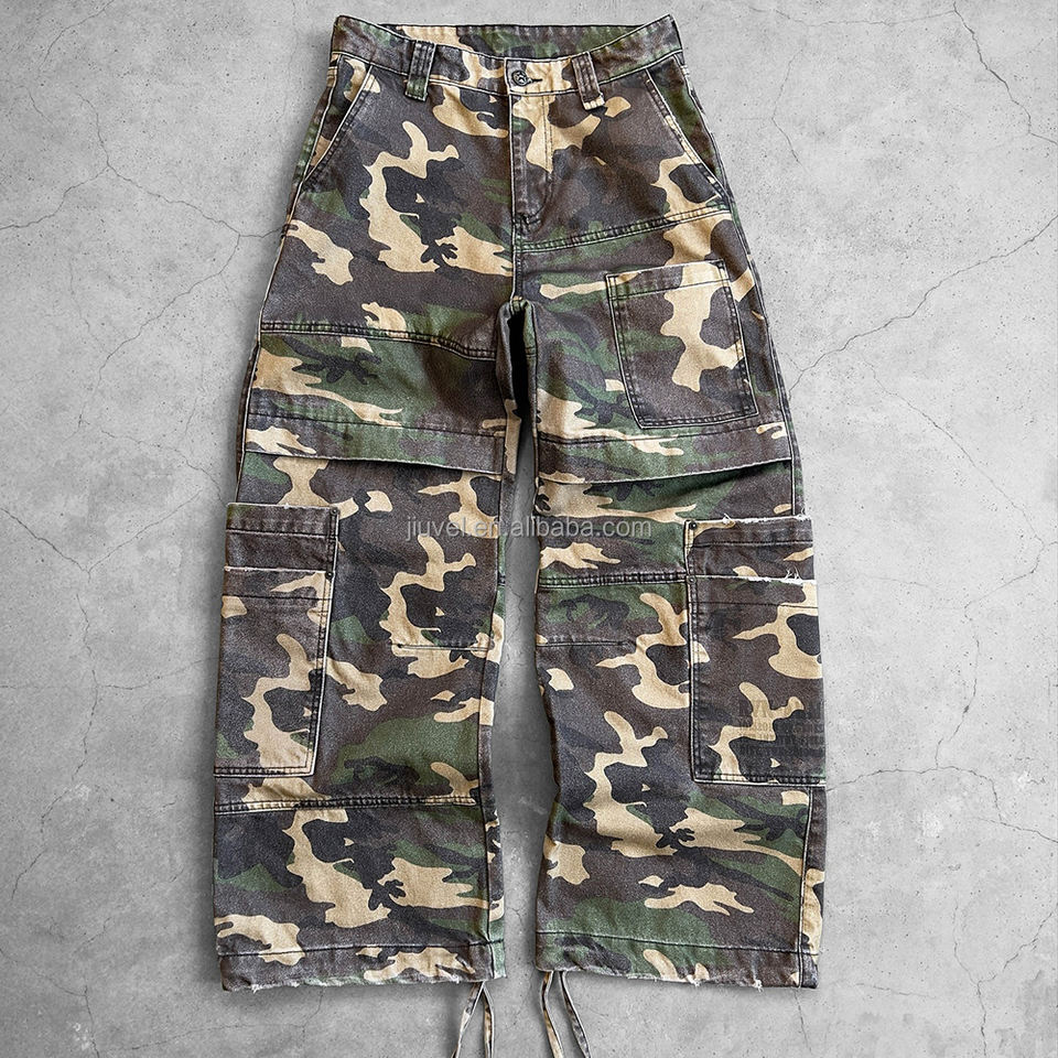 Pantaloni Mimetici di Alta Qualità con Tasche Staccabili, Taglia Oversize, Stile Baggy a Zampa d'Elefante in Tela Ripstop per Uomo