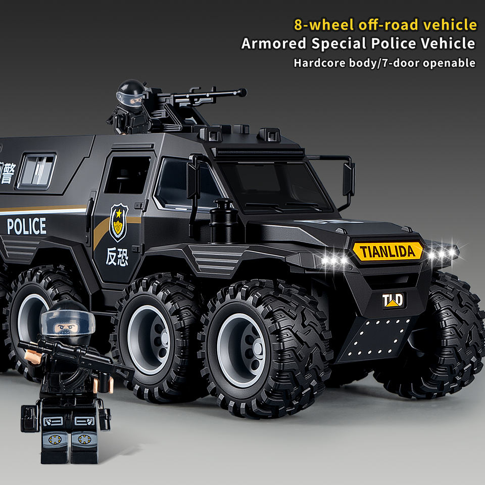 Di alta qualità modellino di auto in scala 1:24 8WD fuoristrada giocattolo della polizia camion dei pompieri giocattoli per auto con illuminazione