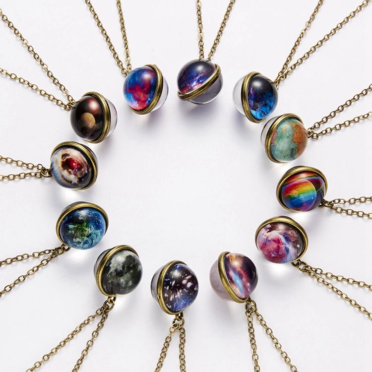Di alta qualità Double Side Moon Earth Starry Planet Glowing In Dark Glass Ball ciondolo donna Galaxy Universe collana gioielli