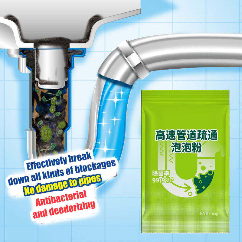 Polvere detergente per scarichi di alta qualità, non nociva, agente sbloccante per tubi del bagno, polvere detergente per lavandini.