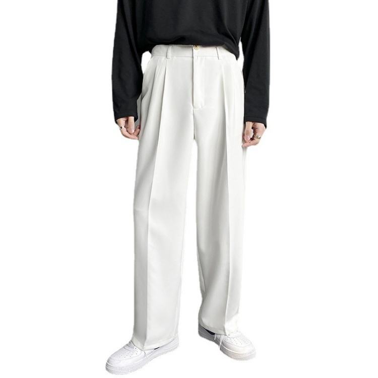 Di alta qualità drappeggio pantaloni a gamba dritta da uomo pantaloni larghi bianchi Casual coreani pantaloni per pulire