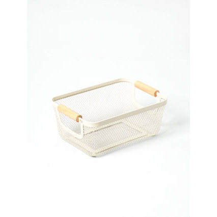 High Quality Eco-Friendly Metal Storage Basket Wooden Handle Rectangular Mesh Fruit Baskets Small PC Material Packaged Cartons