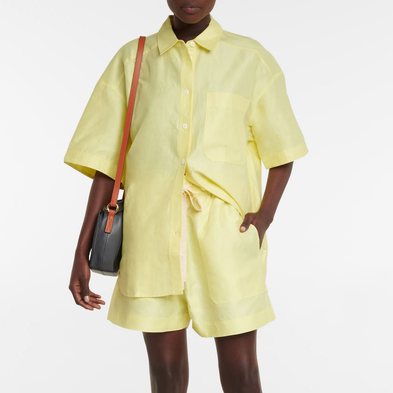 Camicia Elegante da Donna in Lino e Cotone Oversize, Casual, Personalizzabile, Lavabile, Ecologica, di Alta Qualità, in Giallo