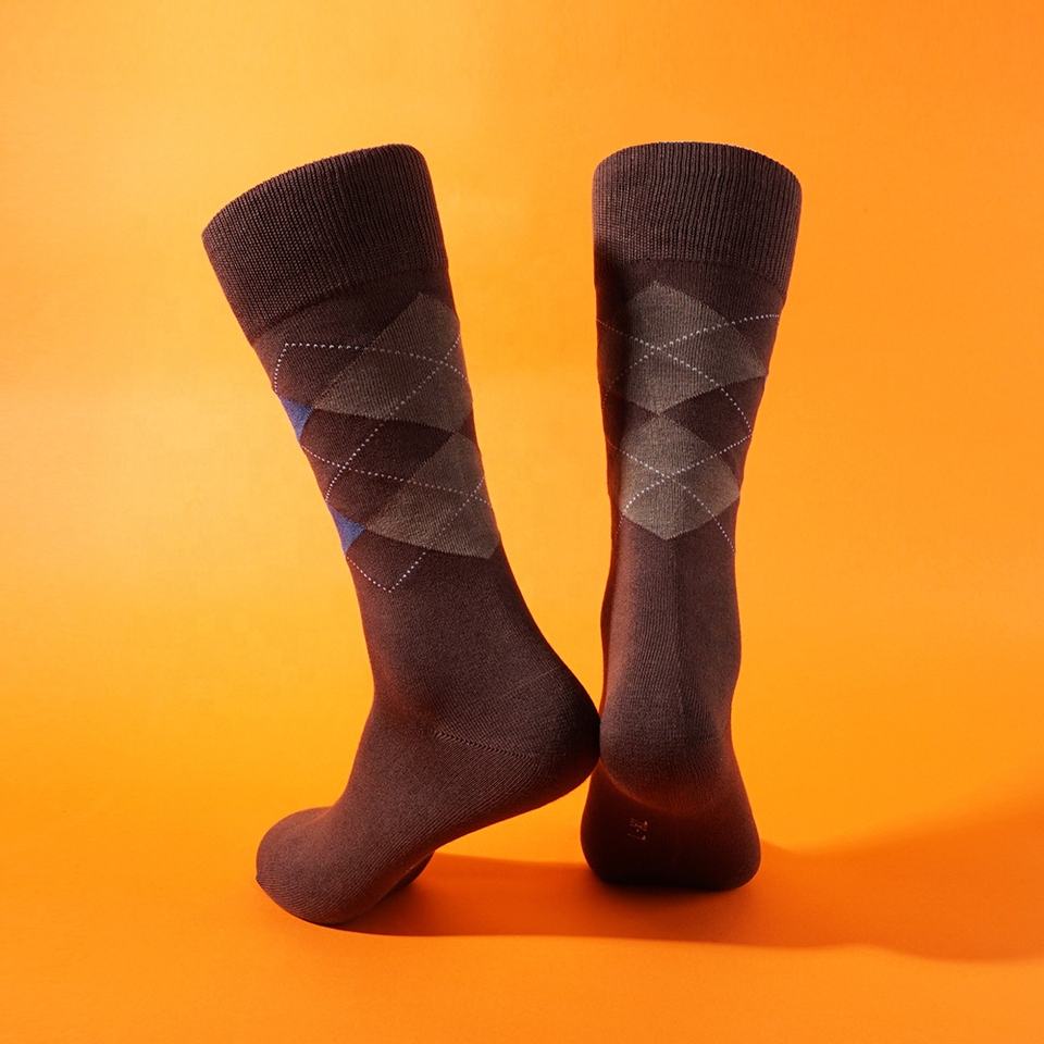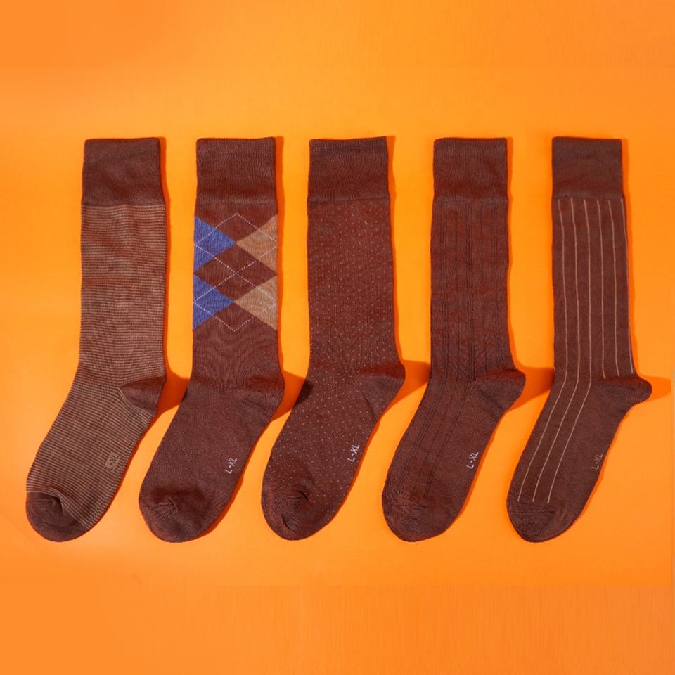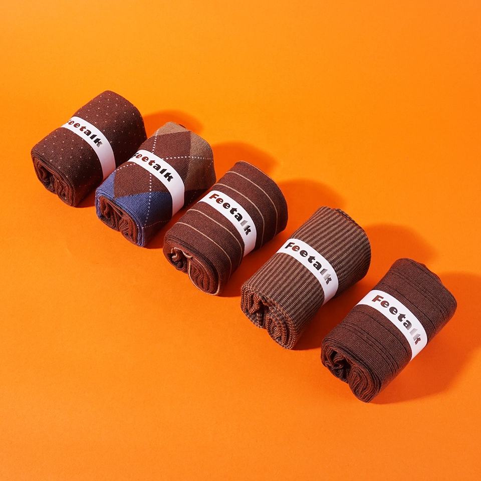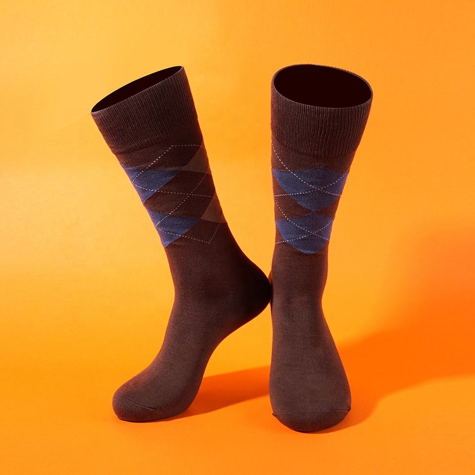 Calzini Formali da Uomo di Alta Qualità con Motivo Geometrico Elastico in Marrone, Stile Trendy Lavorato a Maglia, Produzione Diretta, Collezione Primavera