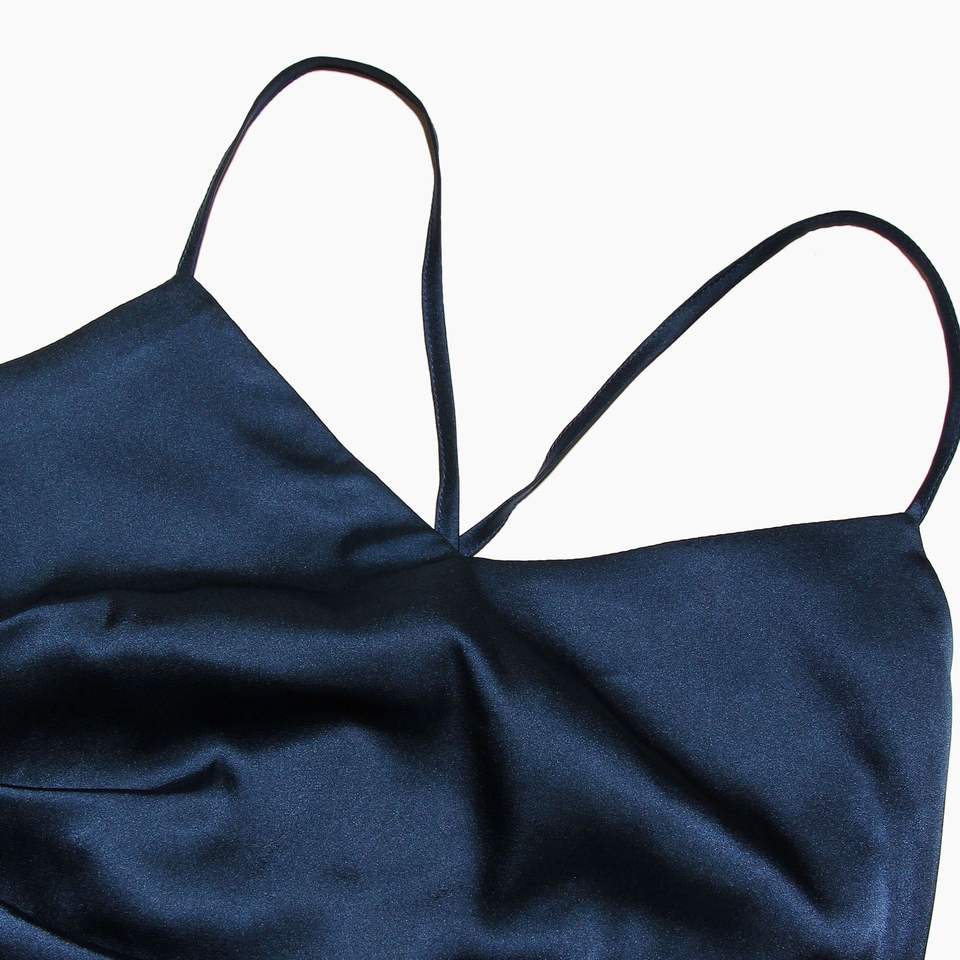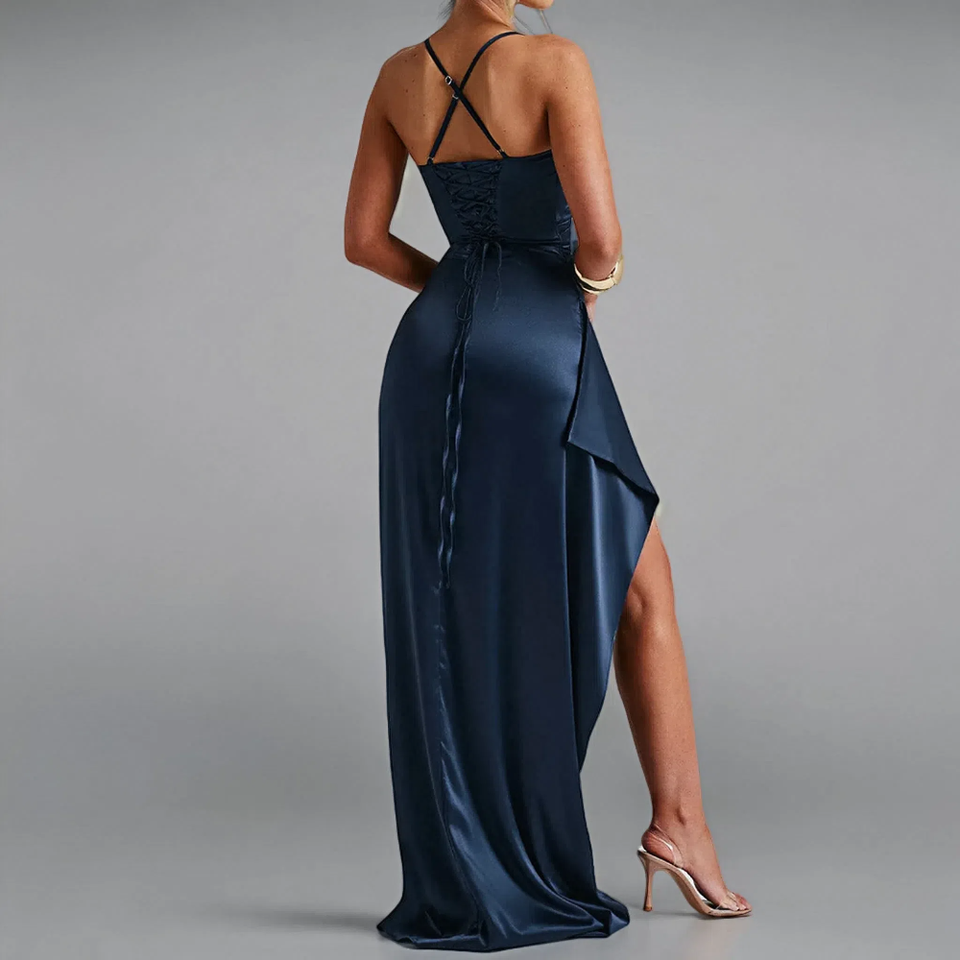High Quality Elegant Long Party Dresses Sexy Satin Dresses Women Elegant Navy Blue Evening Dress High Slit Gown