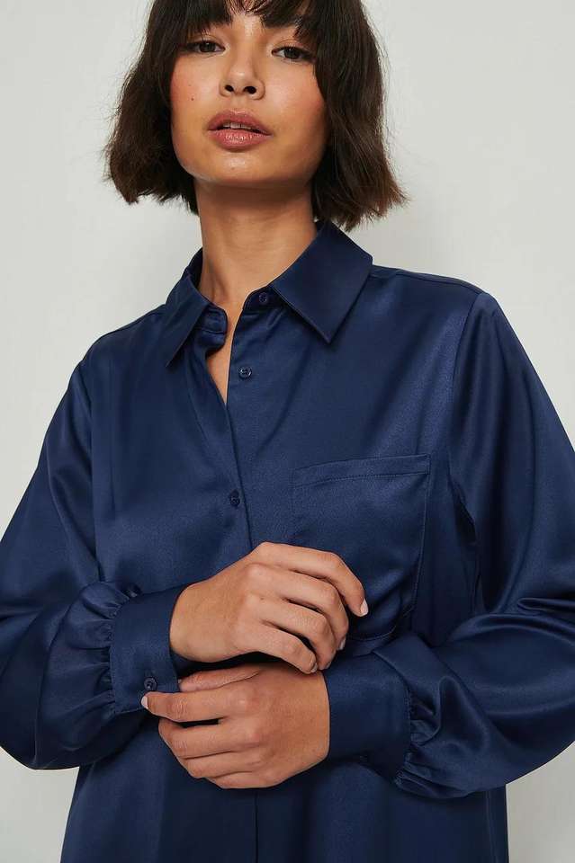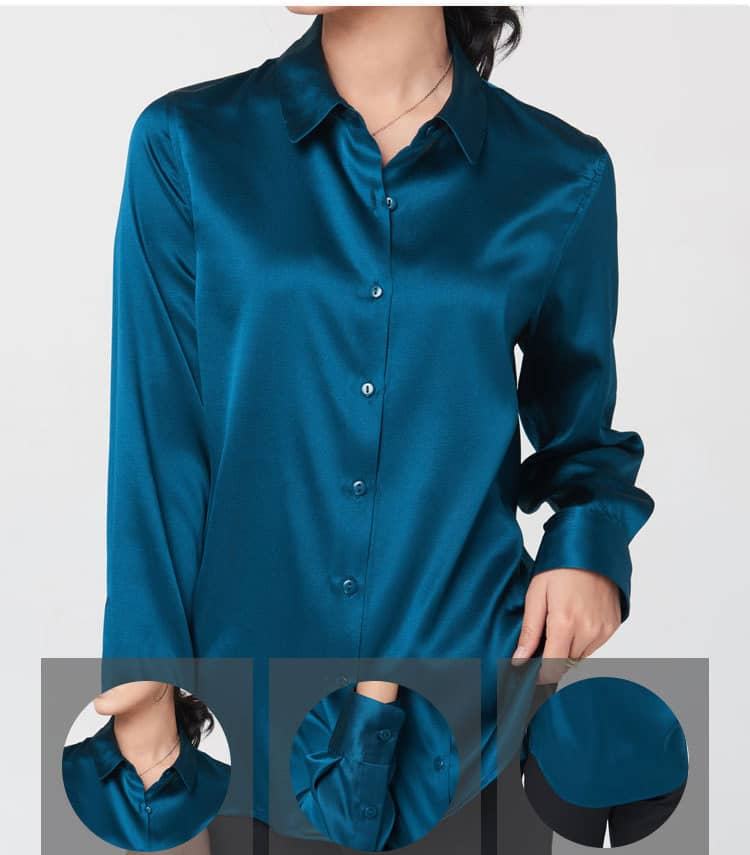 Camicia di alta qualità elegante e naturale di seta di gelso a manica lunga tinta unita con bottone morbida e traspirante camicetta da pendolare