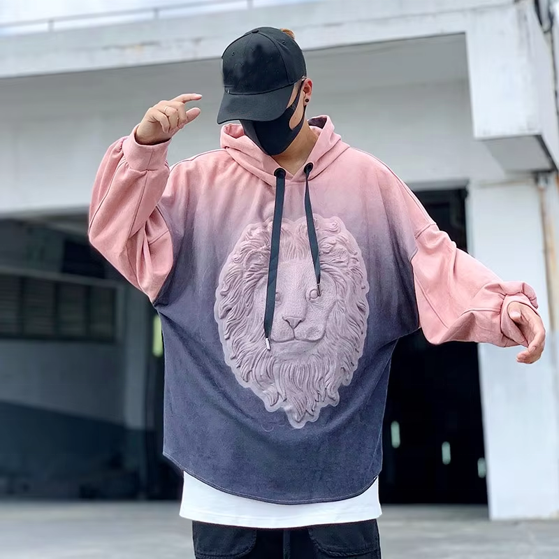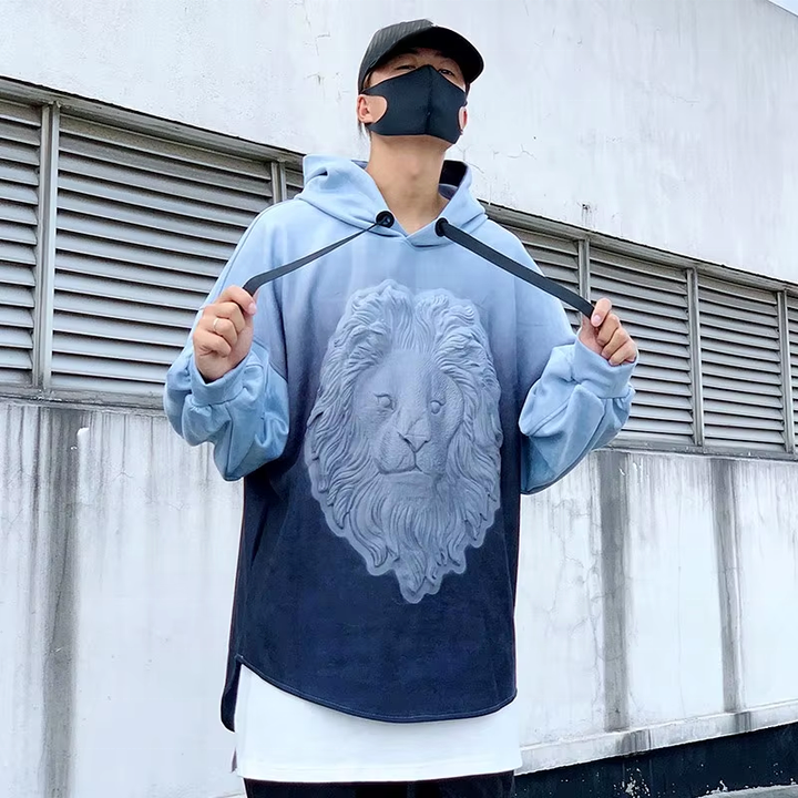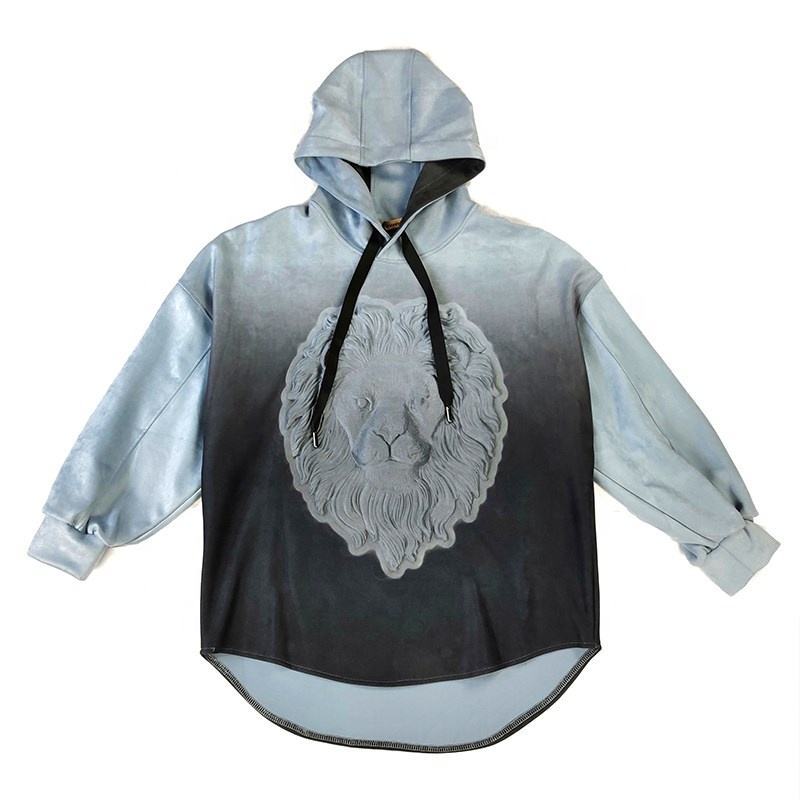 Felpa con cappuccio con Design goffrato di alta qualità con cappuccio con stampa 3D felpa personalizzata con cappuccio con stampa irregolare e testa di leone