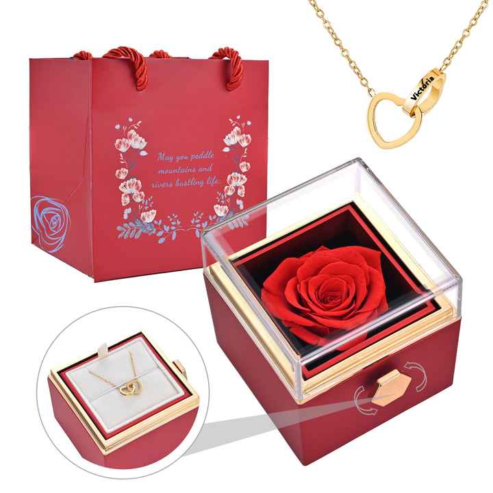 High Quality Engraved Interlocking Hearts to Hearts Pendant Necklace Stainless Steel Women Necklace Eternal Rose With Necklace