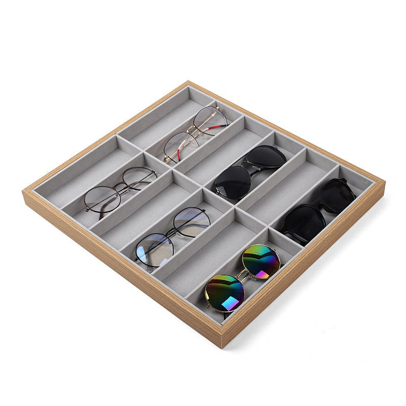 Occhiali di alta qualità del negozio di occhiali da sole da banco scaffali Display Prop 7 12 18 griglie decorazione occhiali da sole vassoi in legno vassoio gioielli