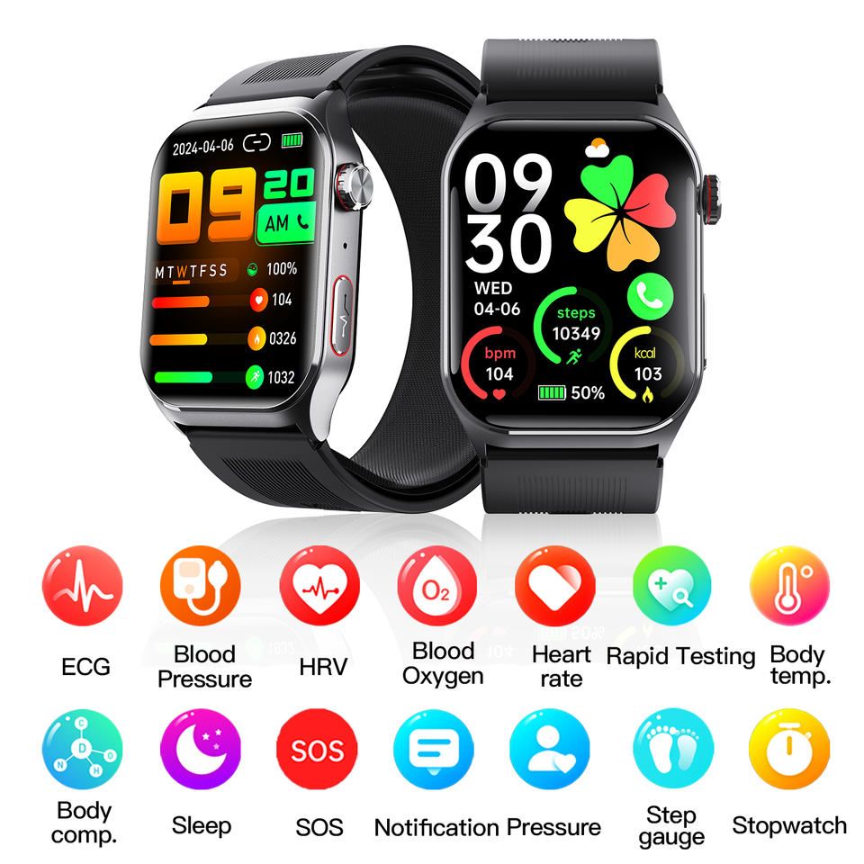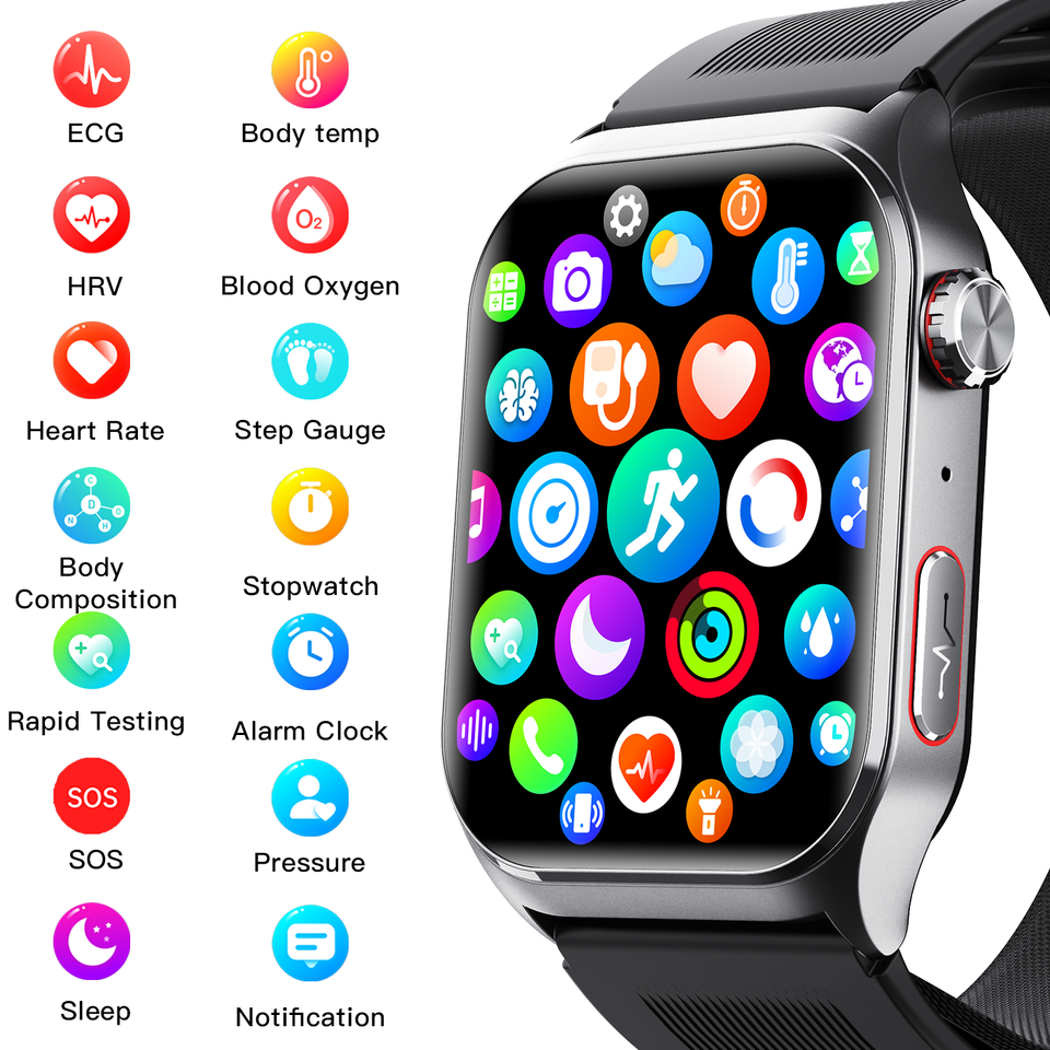 Smartwatch Sportivo F520 di Alta Qualità per Uomo e Donna con Schermo Touch, Monitoraggio della Salute ECG, Temperatura Corporea, Allarme, SOS e Pompa d'Aria