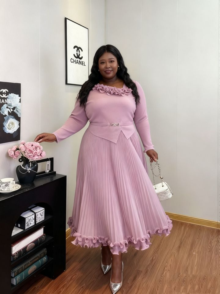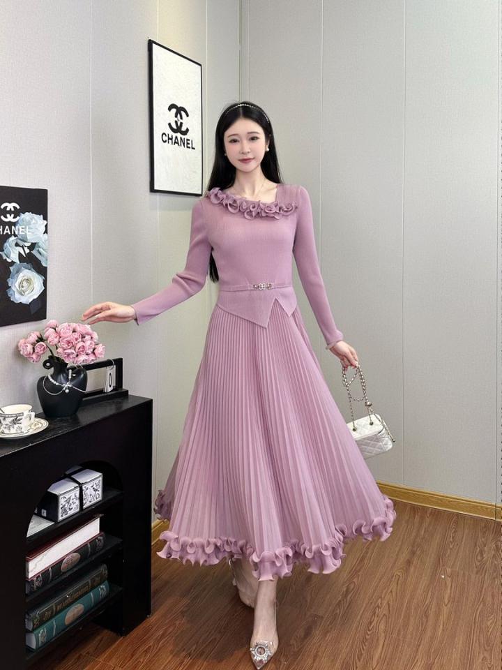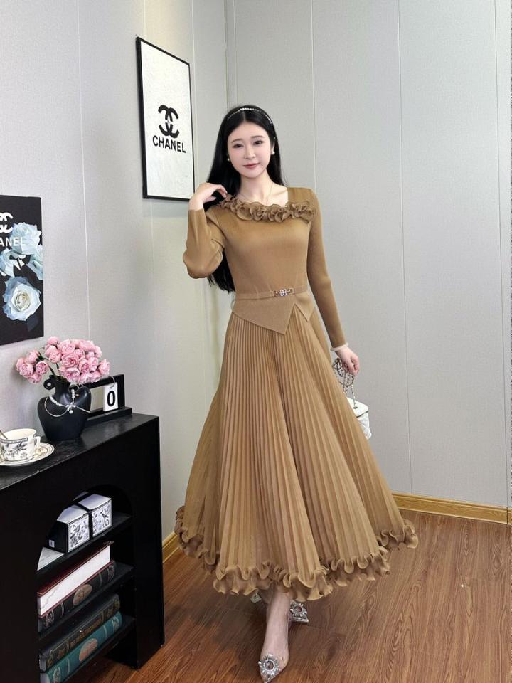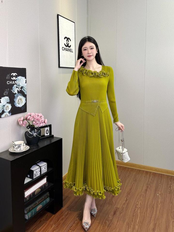 Abiti da Donna Eleganti Miyake di Alta Qualità, Manica Lunga, Stile Semplice con Cintura, Vestiti Casual da Donna in Tinta Unita