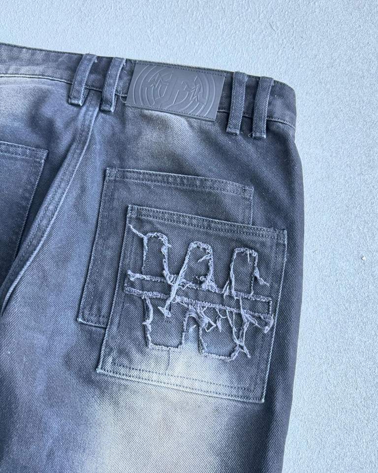 Jeans Vintage da Uomo di Alta Qualità, Denim Pesante, Doppie Tasche, Design Personalizzato con Bottoni, Patch Ricamata, Lavaggio Vintage
