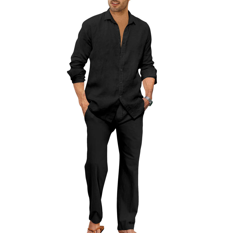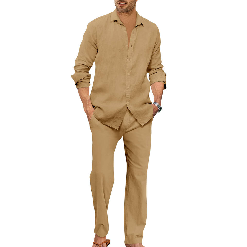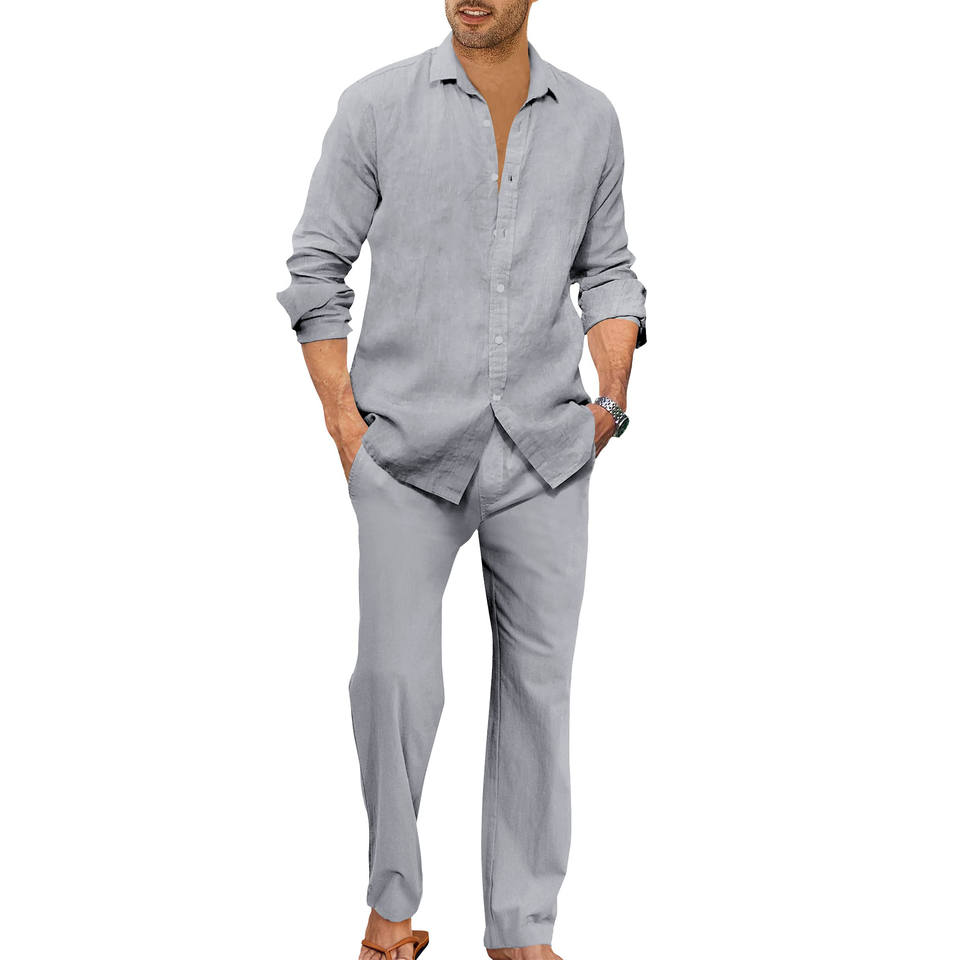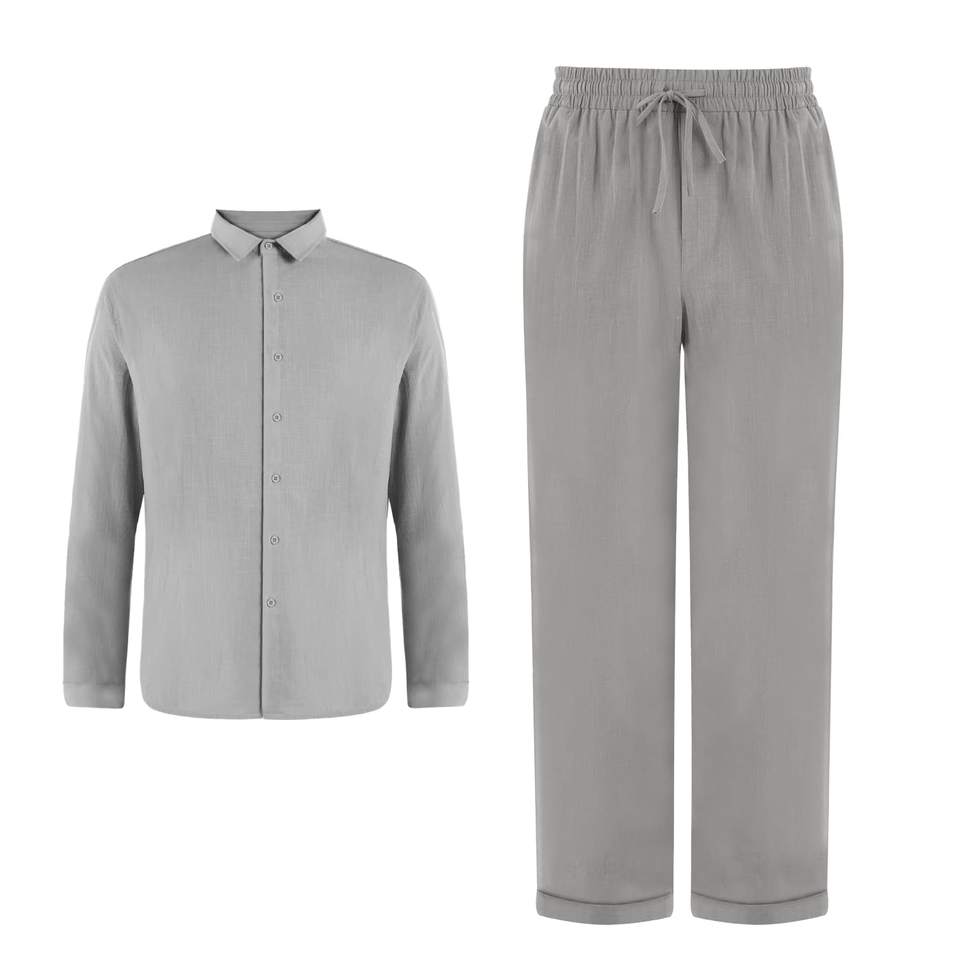 High Quality Factory Men's Cotton Linen Shirts Trousers Suit Solid Color Simple Oversized Beach Casual 2-Piece Set for Man