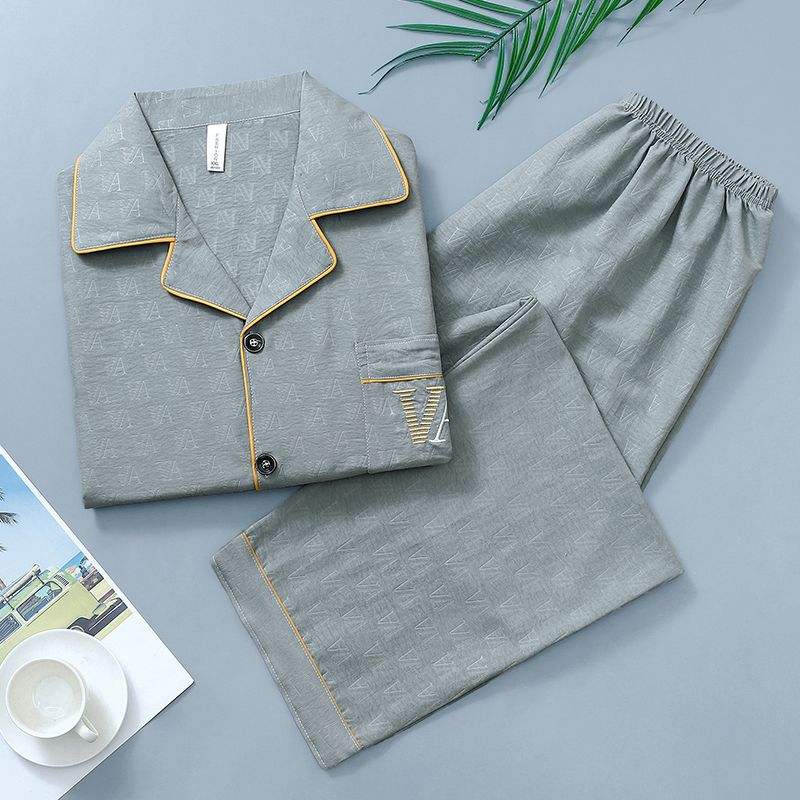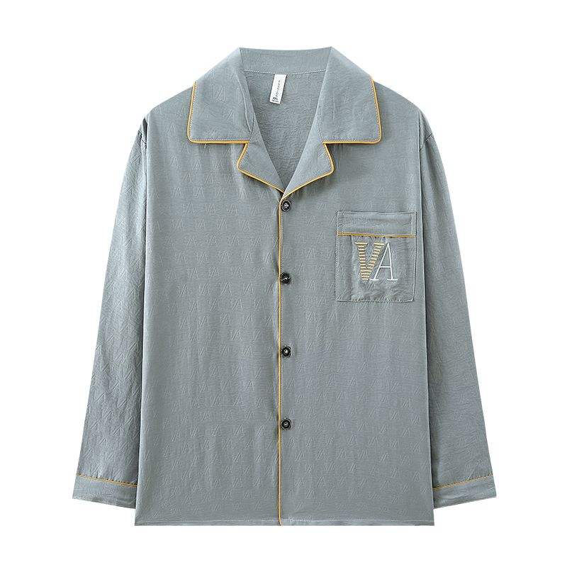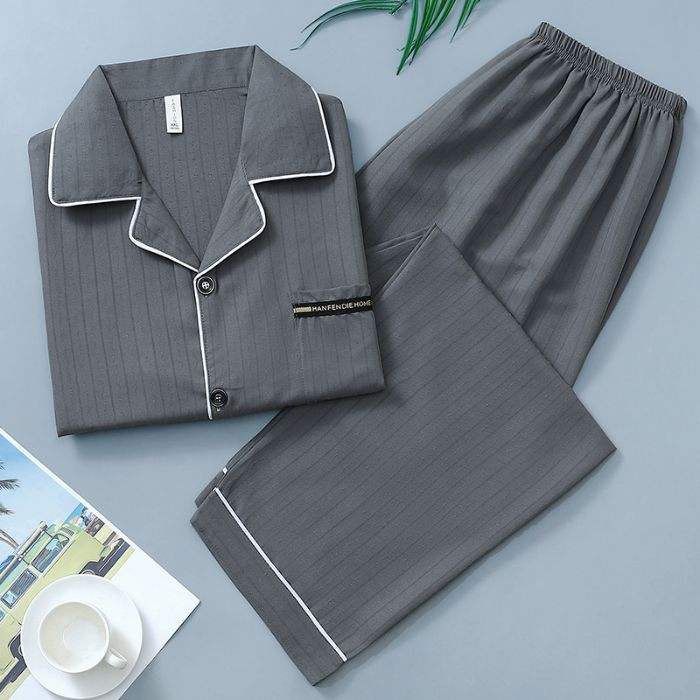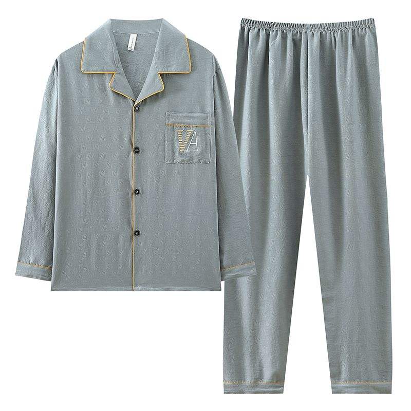 Pigiama da Uomo in Cotone Cloud di Alta Qualità all'Ingrosso, Set Due Pezzi con Cardigan a Maniche Lunghe e Pantaloni, Abbigliamento da Casa Casual Semplice per la Primavera