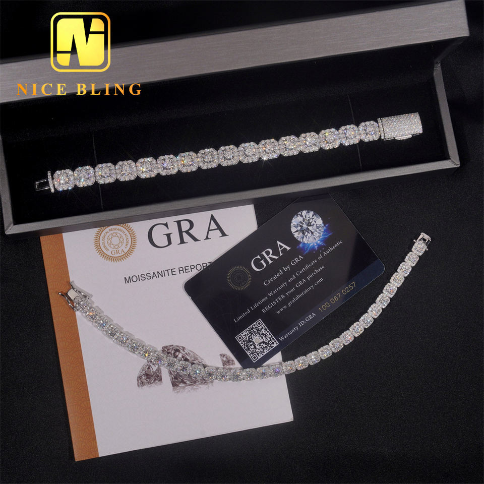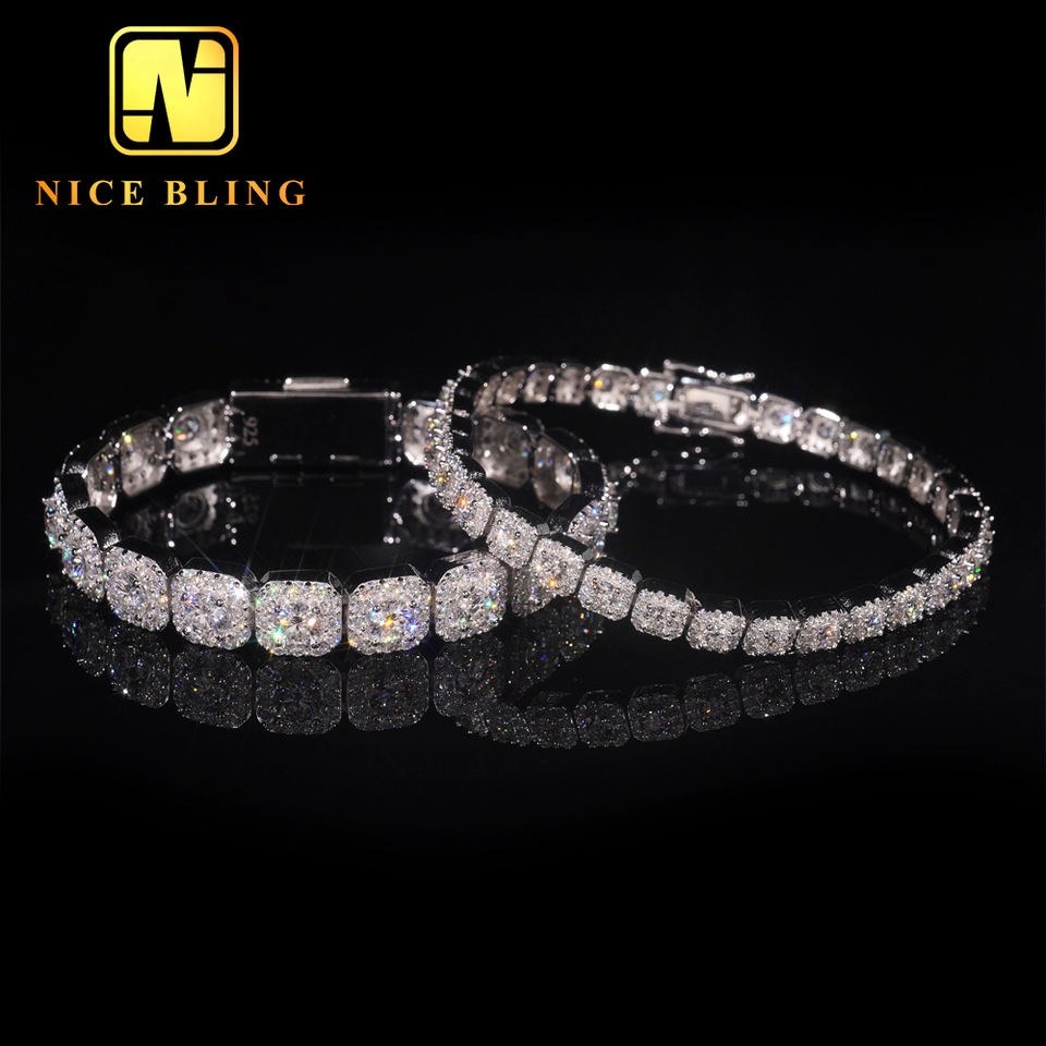 Alta qualità moda Hip Hop 925 Sterling Silver 6mm 10mm Moissanite Cluster Tennis catena bracciale cubano
