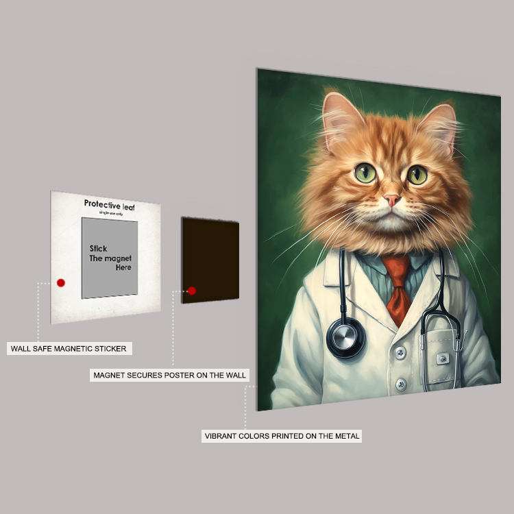 High Quality Fashion Home Wall Art Doctor Cats at Work Art Deco Style Metal Print Magnet Hanging System Metal Wall Printing