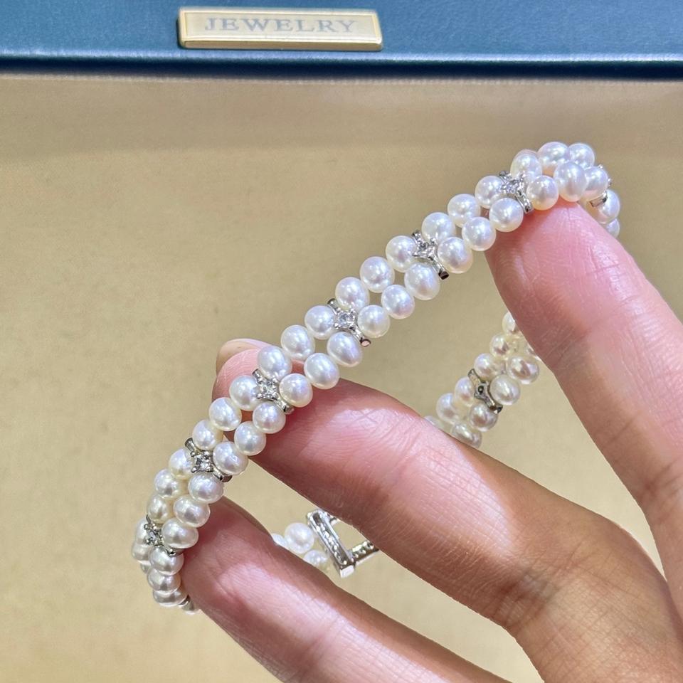 Bracciale di Perle a Doppia Fila di Alta Qualità con Zirconi e Placcatura in Oro 14K, Perle Naturali d'Acqua Dolce per Donne e Ragazze