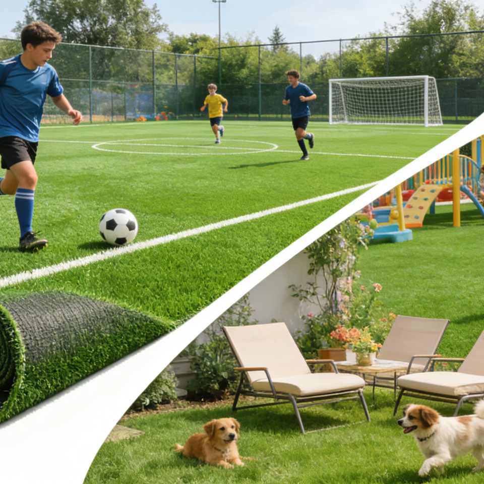Rotoli di Erba Sintetica Ignifuga a Quattro Colori di Alta Qualità, Altezza del Pelo 30mm/10mm, per Giardini e Prati Artificiali Esterni
