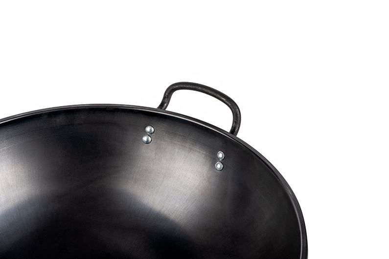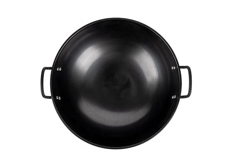 High Quality Full Seasoned Traditional Carbon Steel Wok with One Long Single-hand Handle Black up to 450F Gas Cooker 40cm