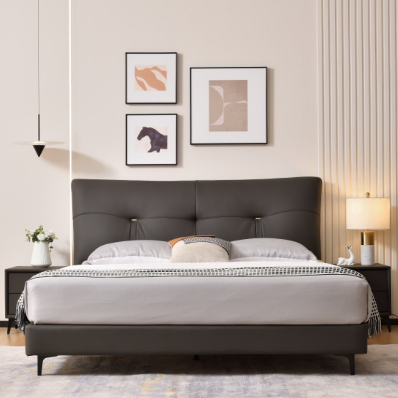 High-Quality Genuine Leather King-Size Bed Dove Super Soft Large Bed Suitable For Master Bedrooms Or Apartments