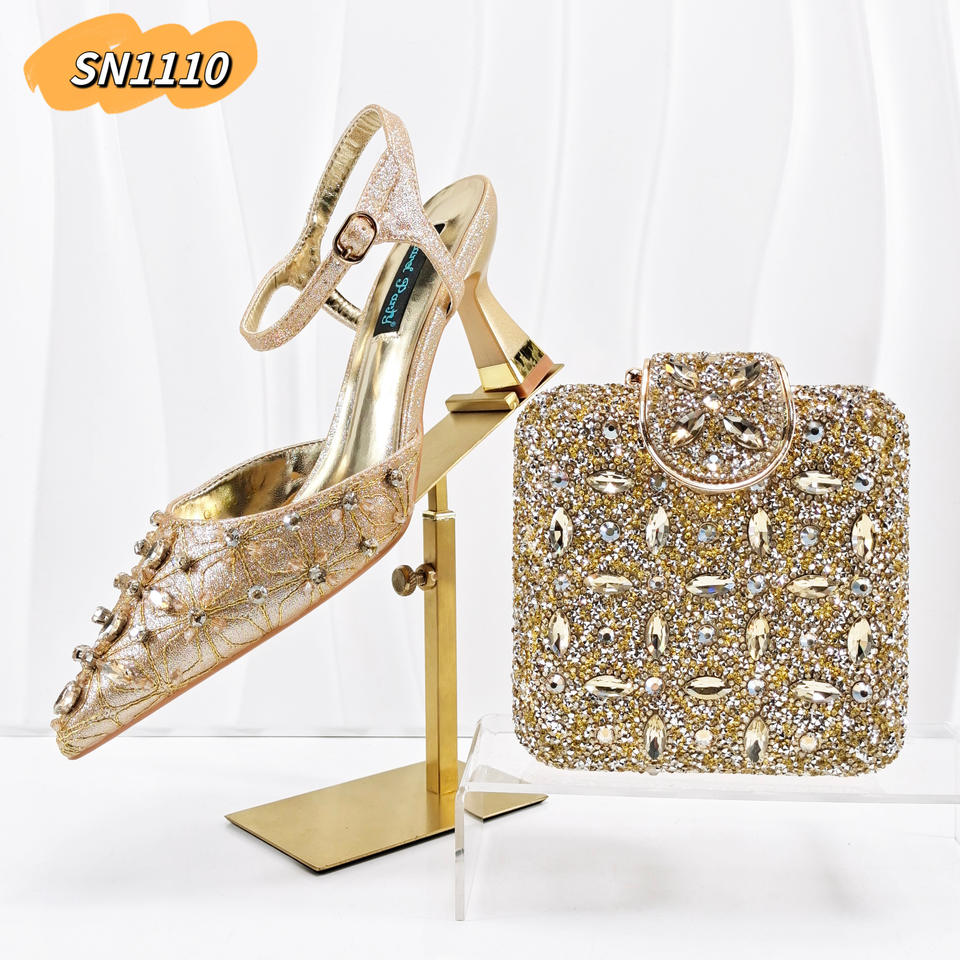 Scarpe Eleganti con Tacco Alto in Oro di Alta Qualità, Set di Scarpe e Borsa Abbinate per Sposa, Ideali per Matrimoni