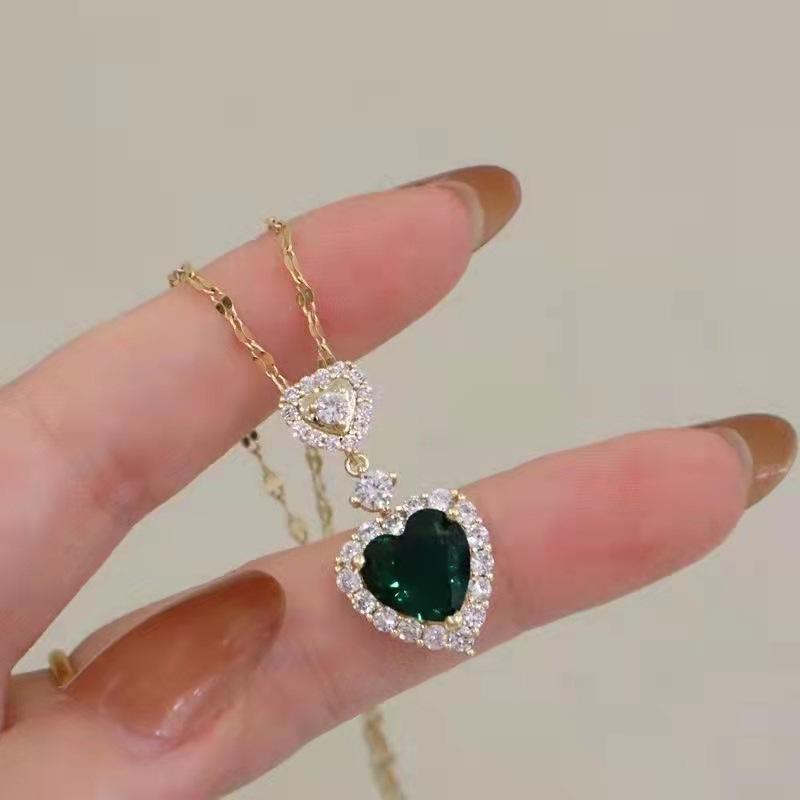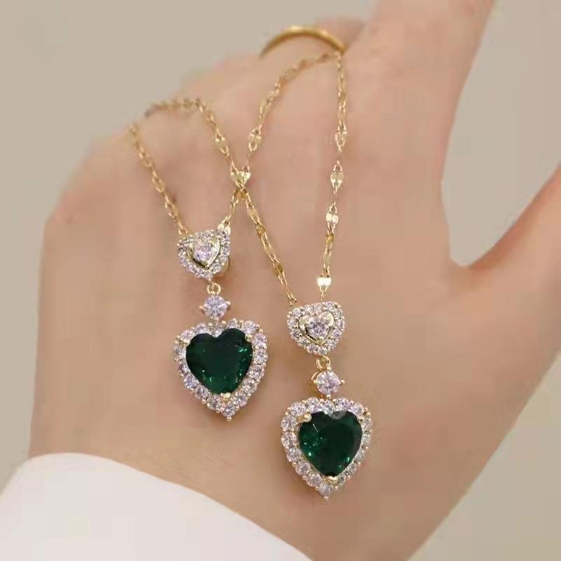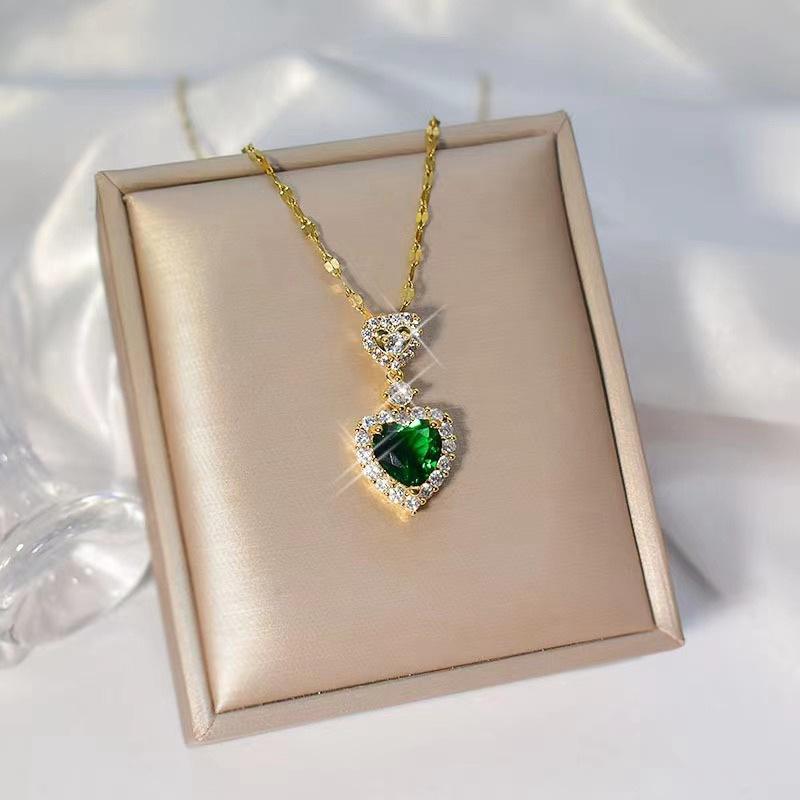 Nome del prodotto:Collana pendente cuore amore smeraldo