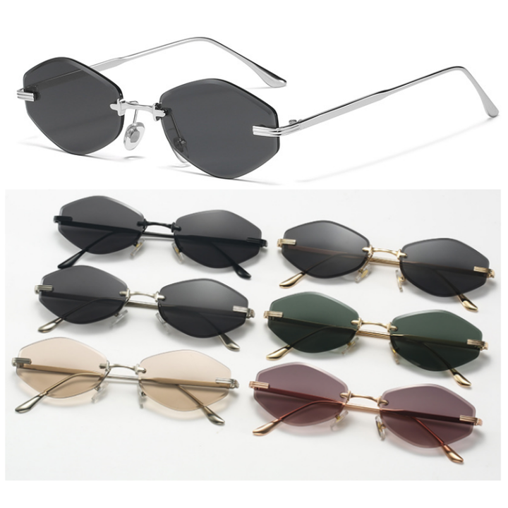Occhiali da sole poligoni e occhiali da sole senza montatura in metallo dorato UV400 senza montatura taglio diamante senza montatura occhiali da sole uomo donna