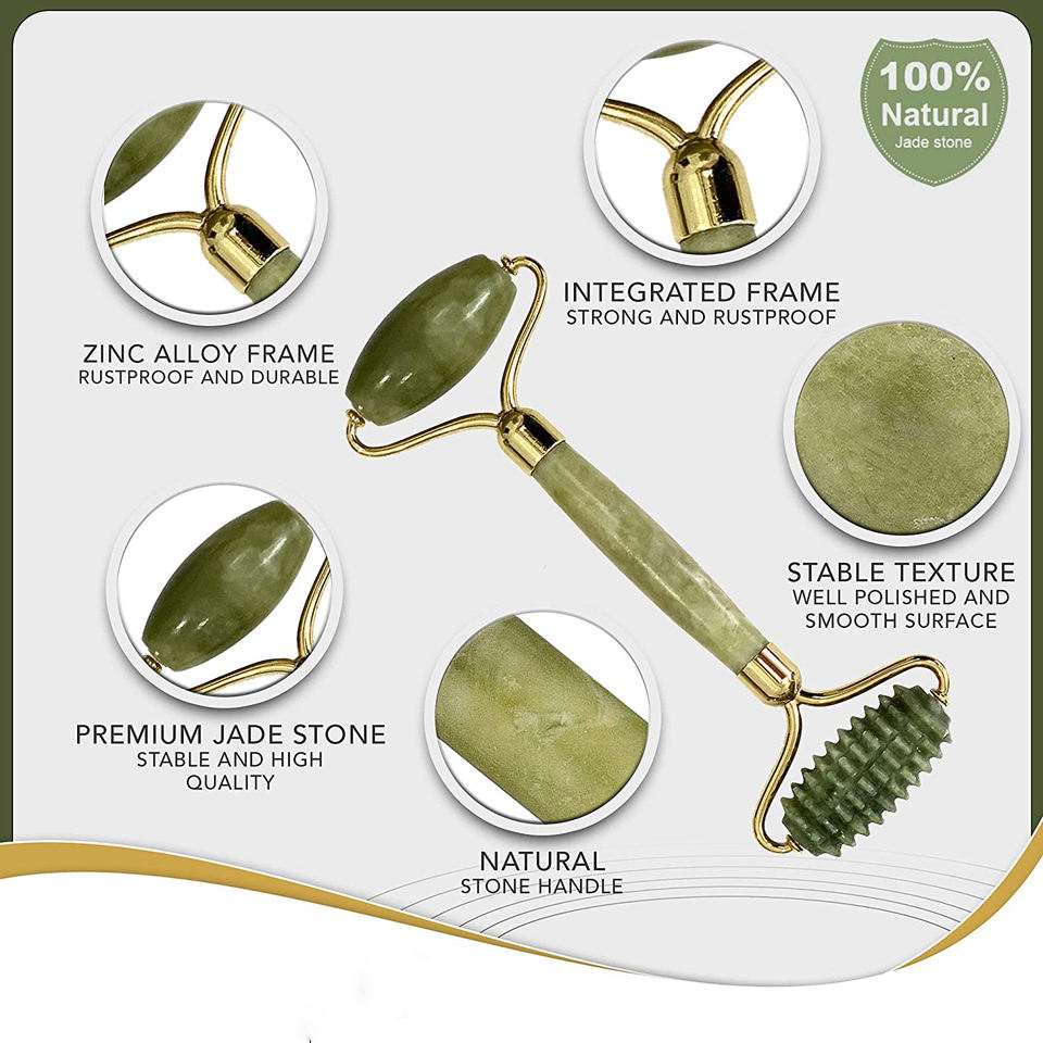 High Quality Green Jade Facial Roller Guasha Set Skin Care Massage Roller Stone for Face Application