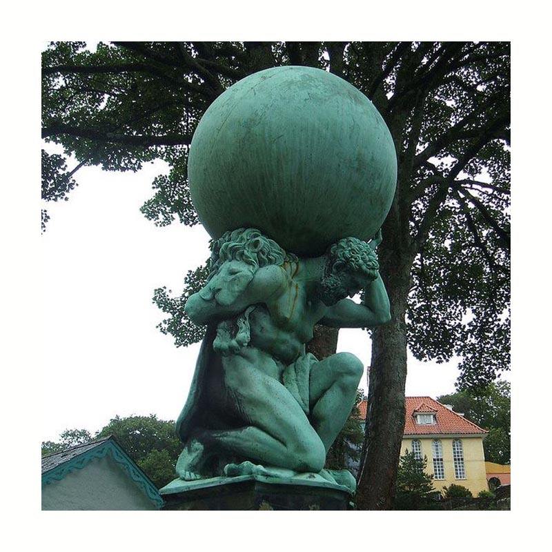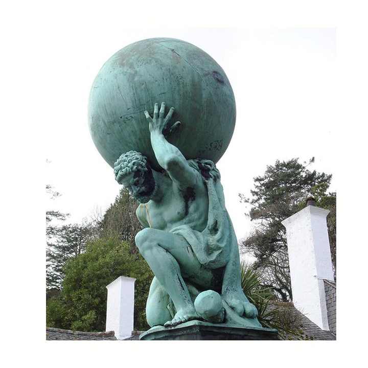 High Quality Hand Carved Polished Cast Copper Bronze Statue Atlas Holding the World Sculpture Fengshui