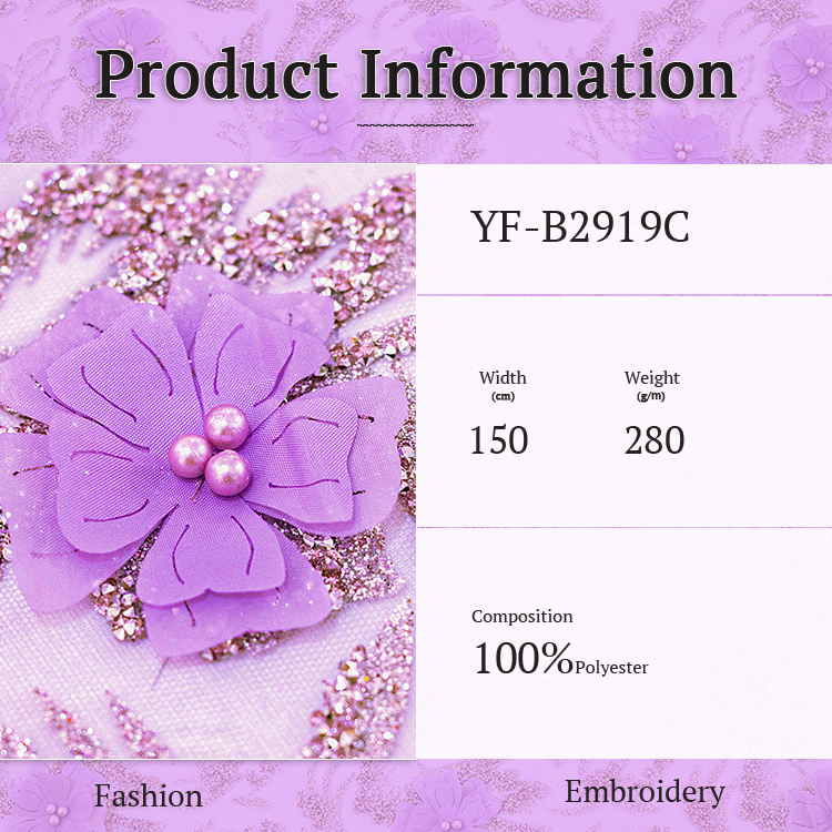 Tessuto ricamato 3d di alta qualità tessuto 280 g/m Designer tessuto con perline con perla e strass per abito da sposa