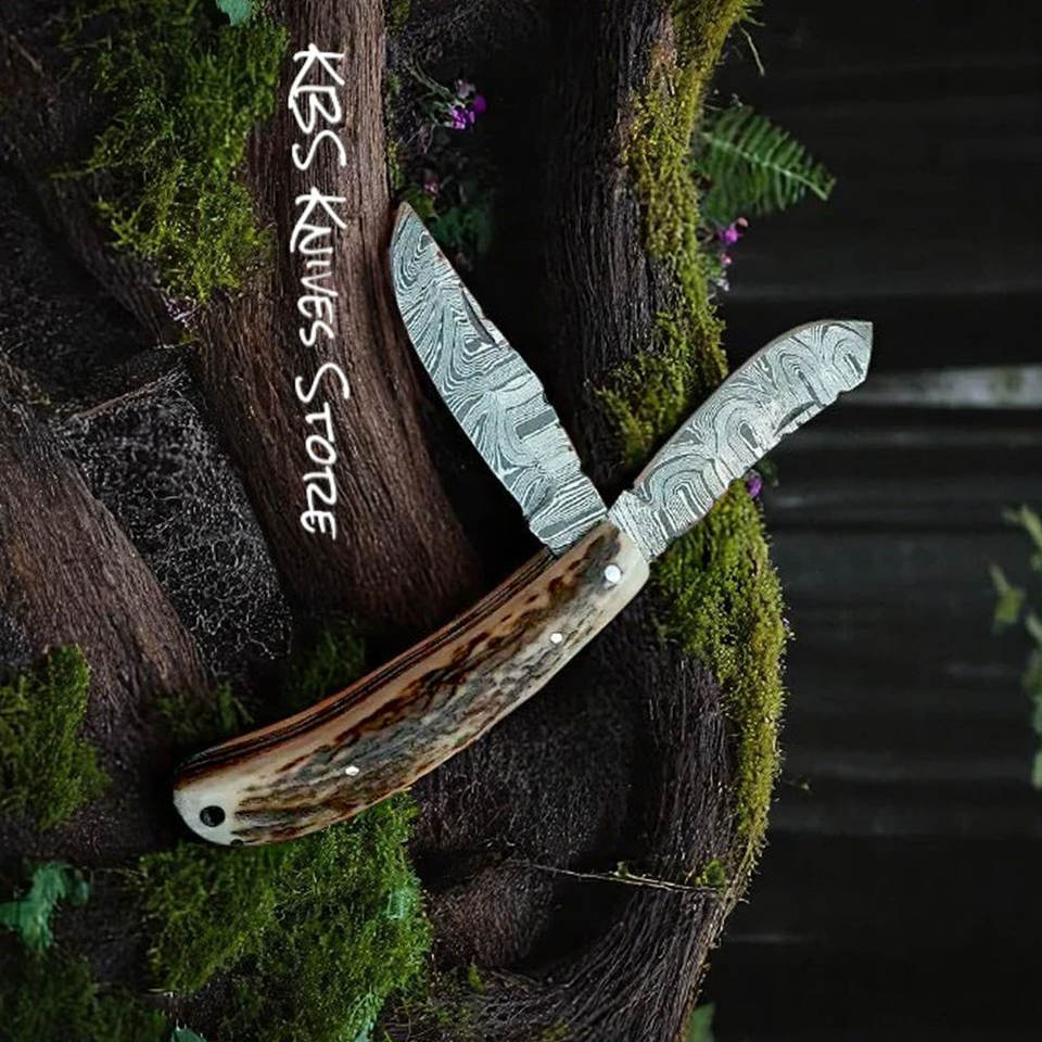 Coltello tascabile in acciaio damasco fatto a mano di alta qualità accessorio da campeggio all'aperto