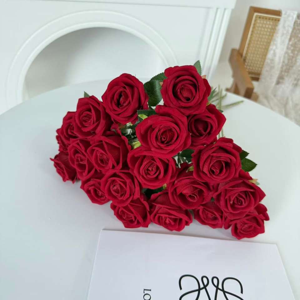 Rose in Velluto di Alta Qualità Fatte a Mano, Fiori Artificiali per Matrimoni, Decorazioni per la Casa in Tessuto, Realistiche e Simulate per Natale