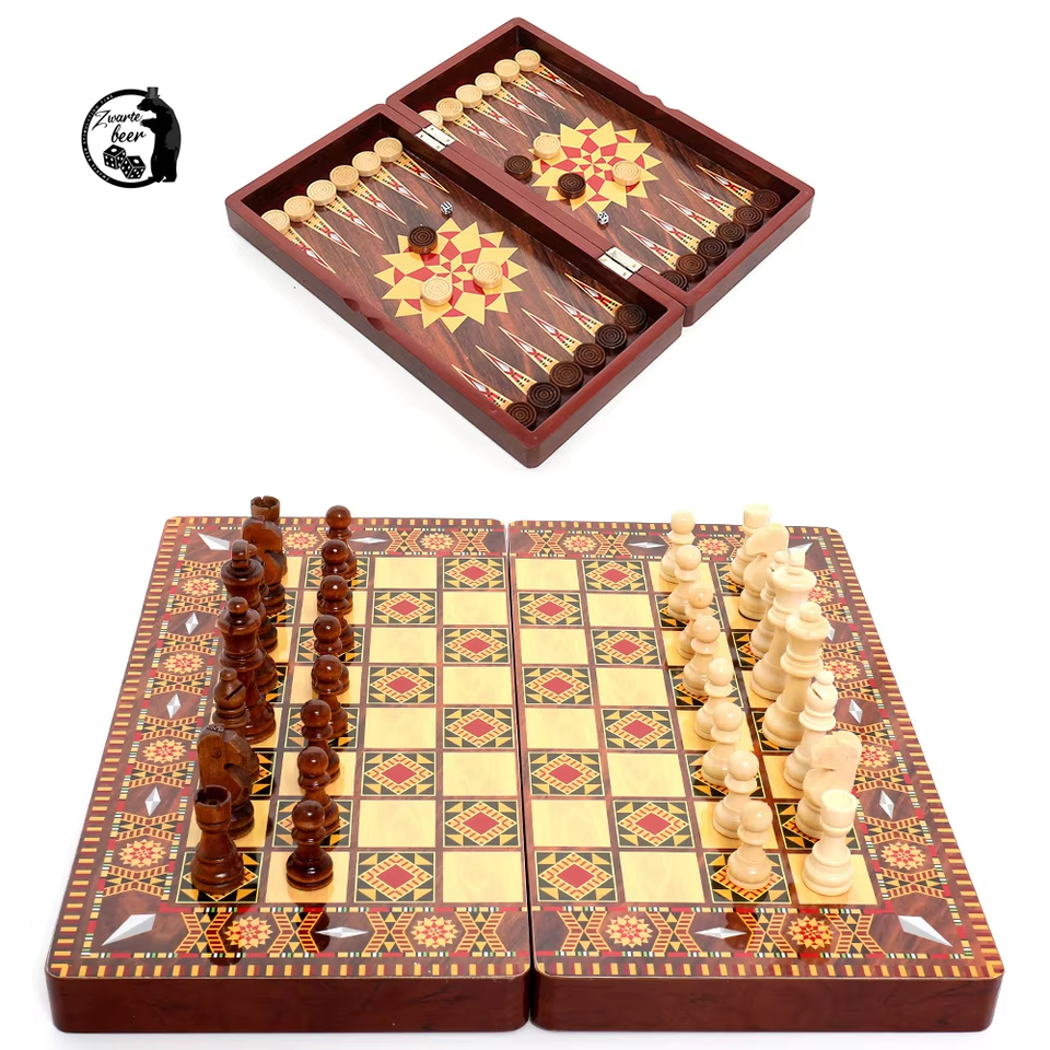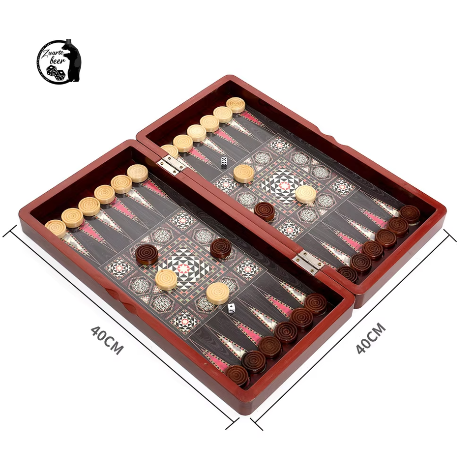 Set da Backgammon in Legno Fatto a Mano di Alta Qualità 40x40cm Personalizzabile con Stampa Laser, Dadi e Pedine per Adulti