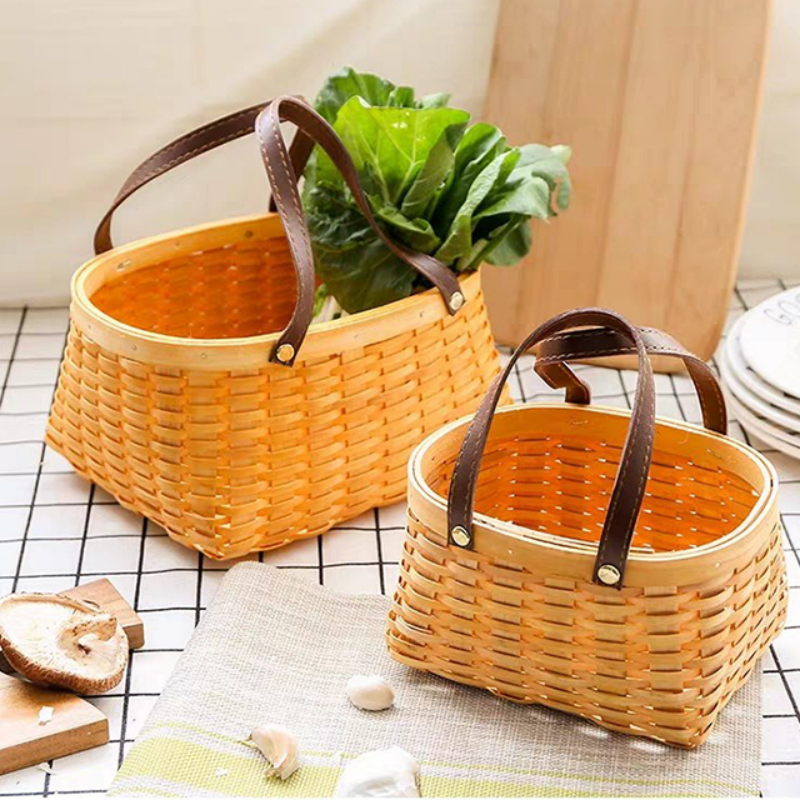 High Quality Handwoven Log Colored Wood Chip Storage Basket Hot Selling for Home Picnic Fruits Fresh Flowers and Vegetables