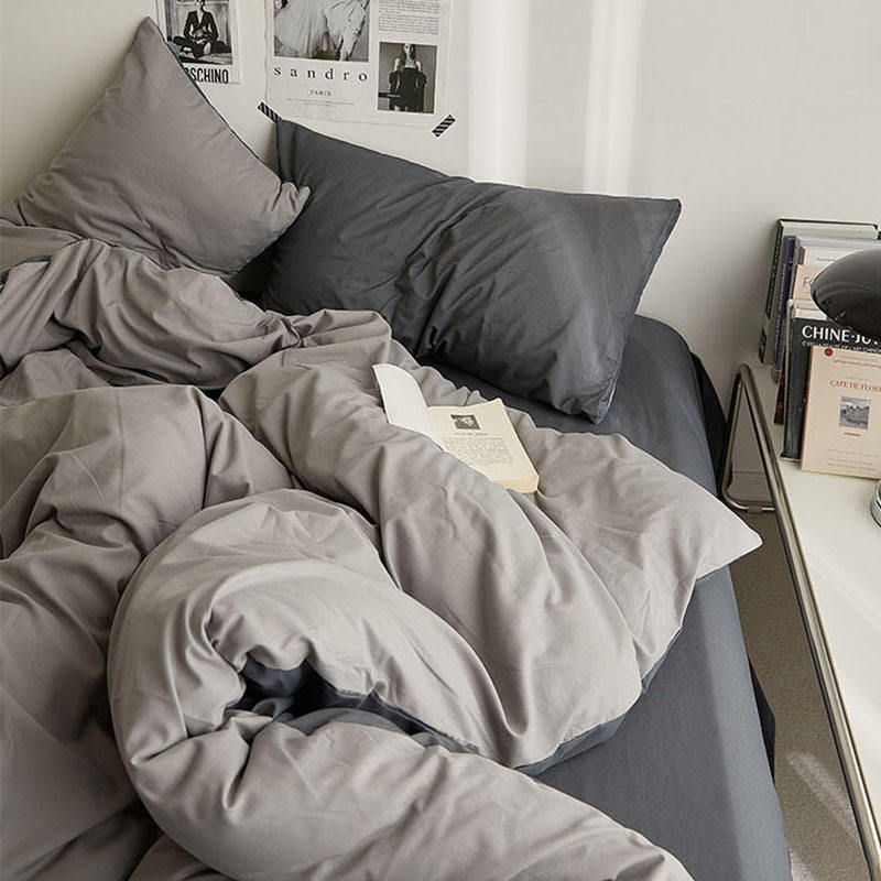 Set di Biancheria da Letto di Alta Qualità Stile Ins in Cotone Lavabile Tinta Unita Morbido e Caldo con Finitura Spazzolata 4 Pezzi Copripiumino e Lenzuola