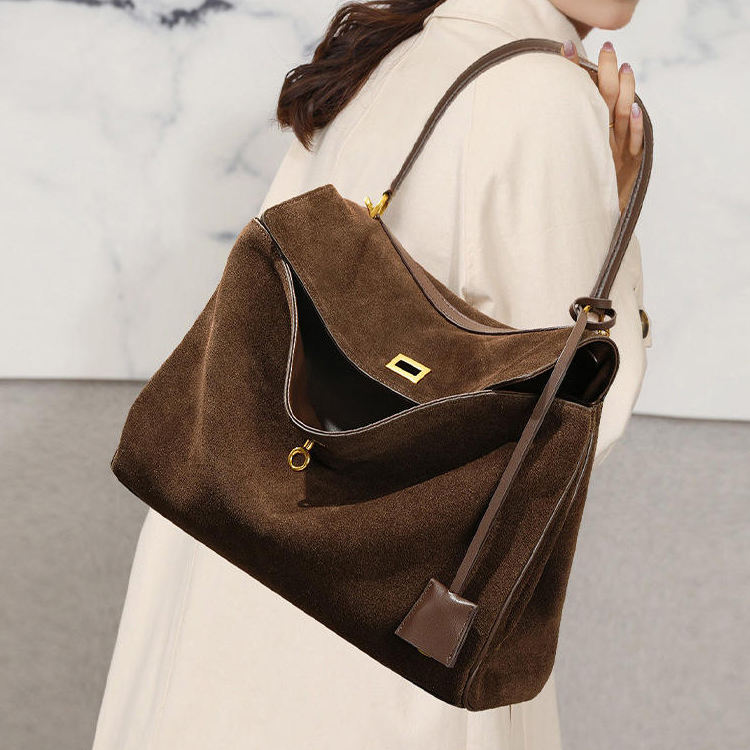 High Quality Luxury Genuine Leather Suede Tote Bag Women's Large Capacity Branded Bags Luxury Women Shoulder Bag Handbag