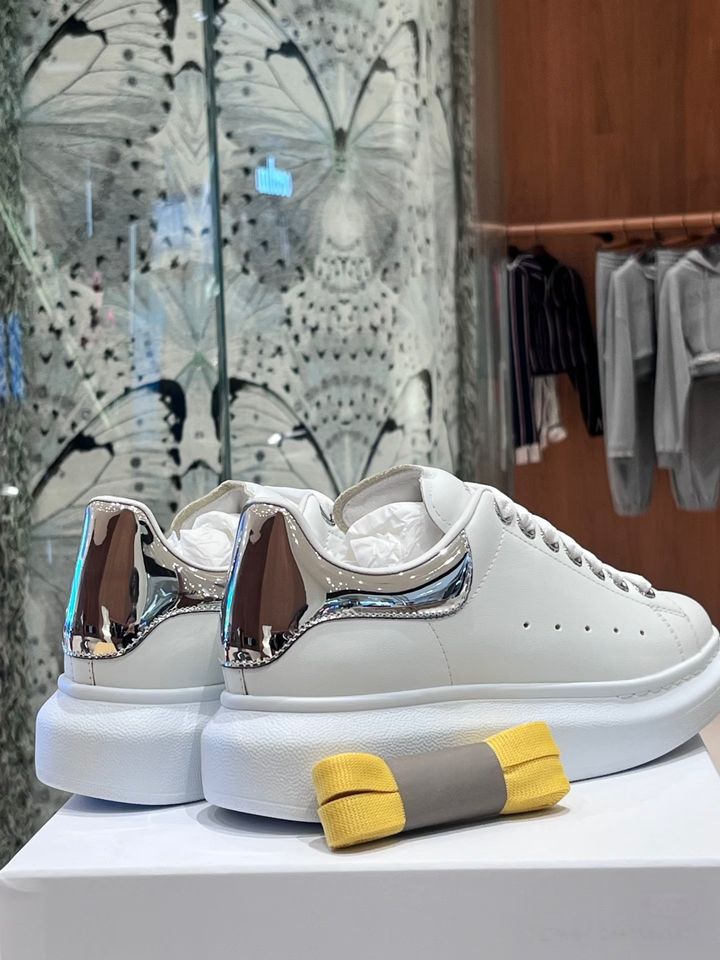 Sneakers Bianche di Lusso in Vera Pelle di Alta Qualità, Scarpe Sportive Unisex Designer McQueenes, Calzature Traspiranti con Rialzo di Marca