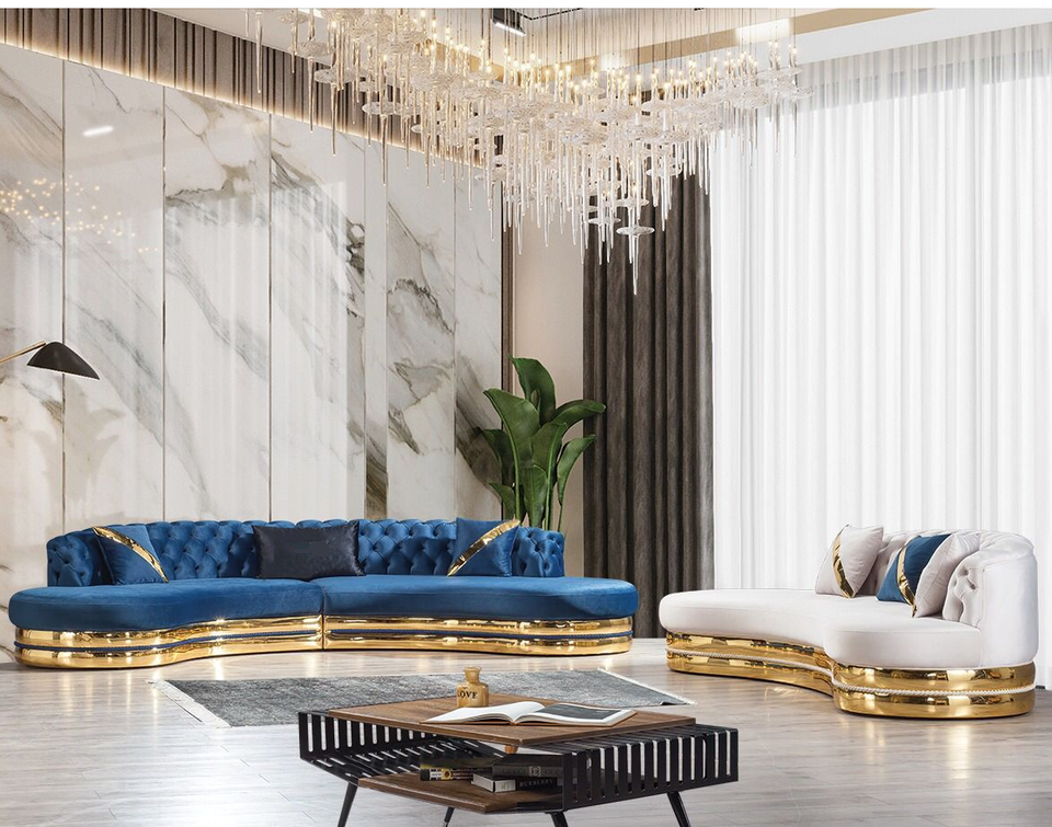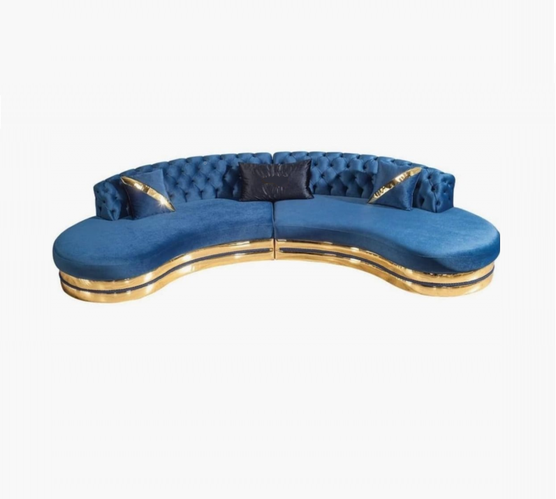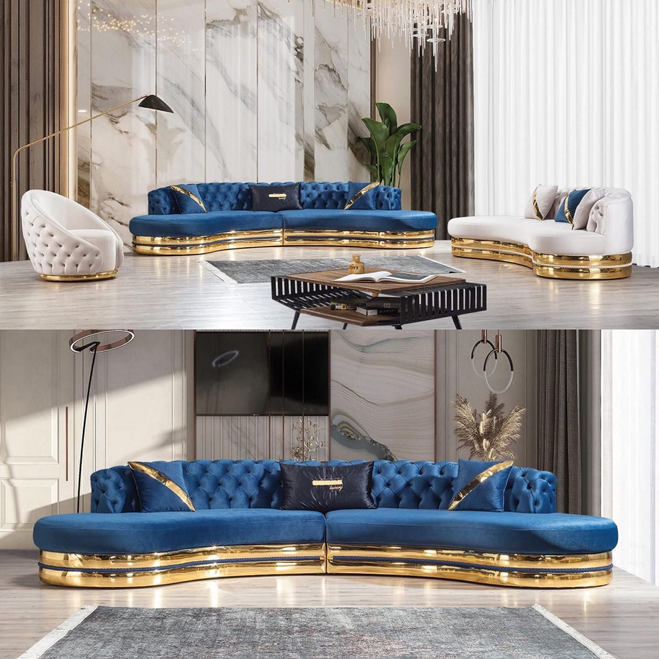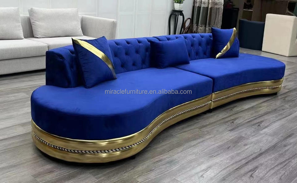 Divano di Lusso di Alta Qualità per Soggiorno con Finiture in Plastica Dorata Rivestimento in Tessuto 2-3 Posti per Hotel e Casa