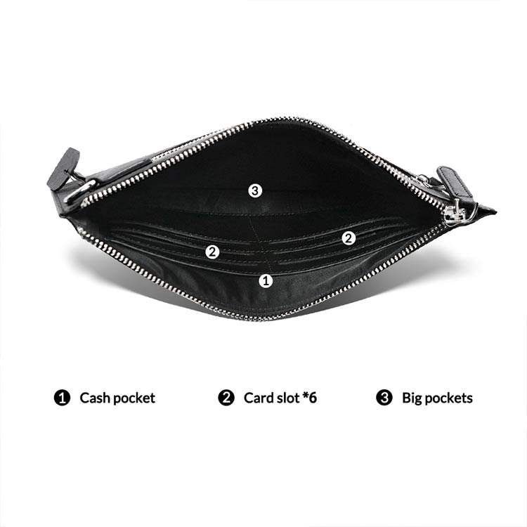 High Quality Luxury Men's Vintage Style Handbag Genuine Leather Zipper Custom Logo Anti-Theft Feature Summer Fashion Clutch Bag