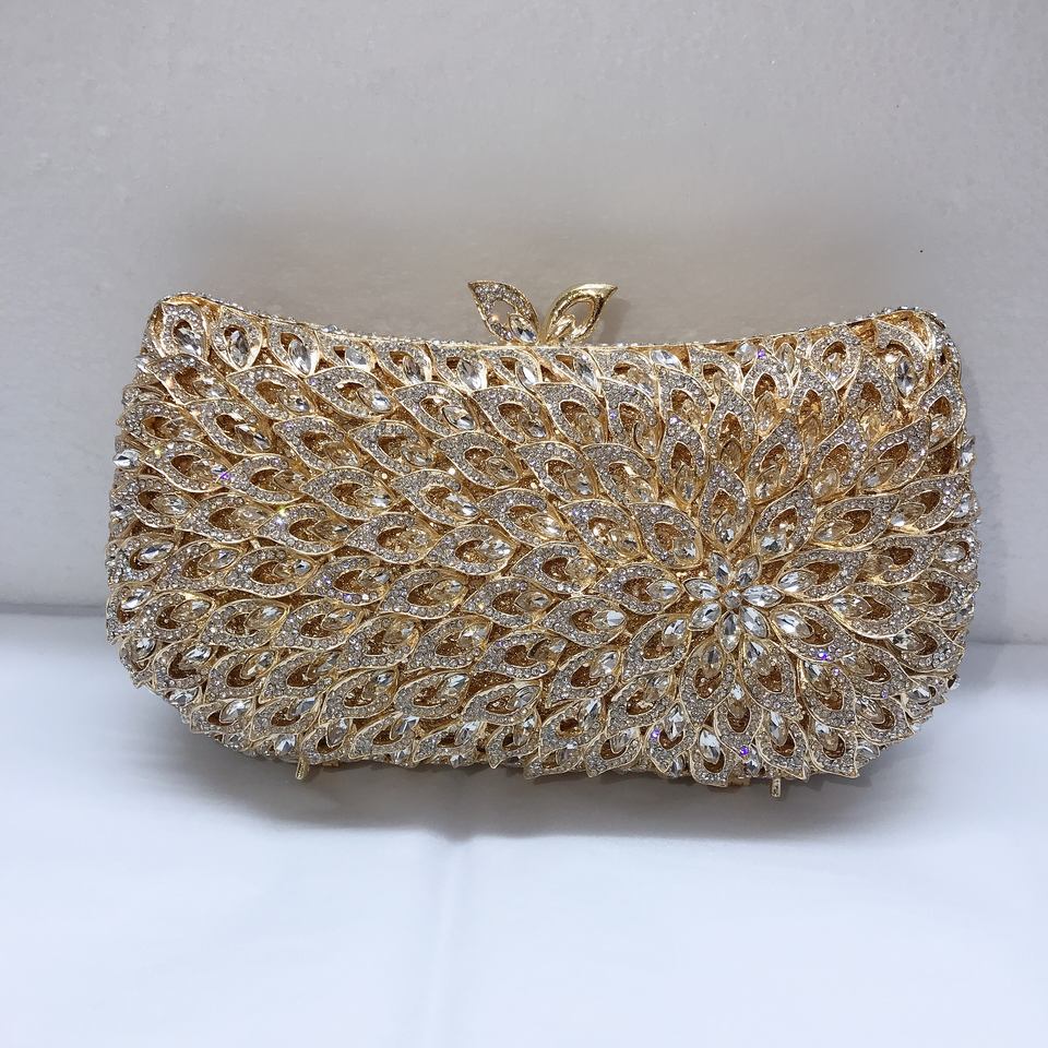 Borsa da Sera di Lusso di Alta Qualità con Cristalli Scintillanti, Forma Quadrata, Pochette da Donna in Oro e Argento