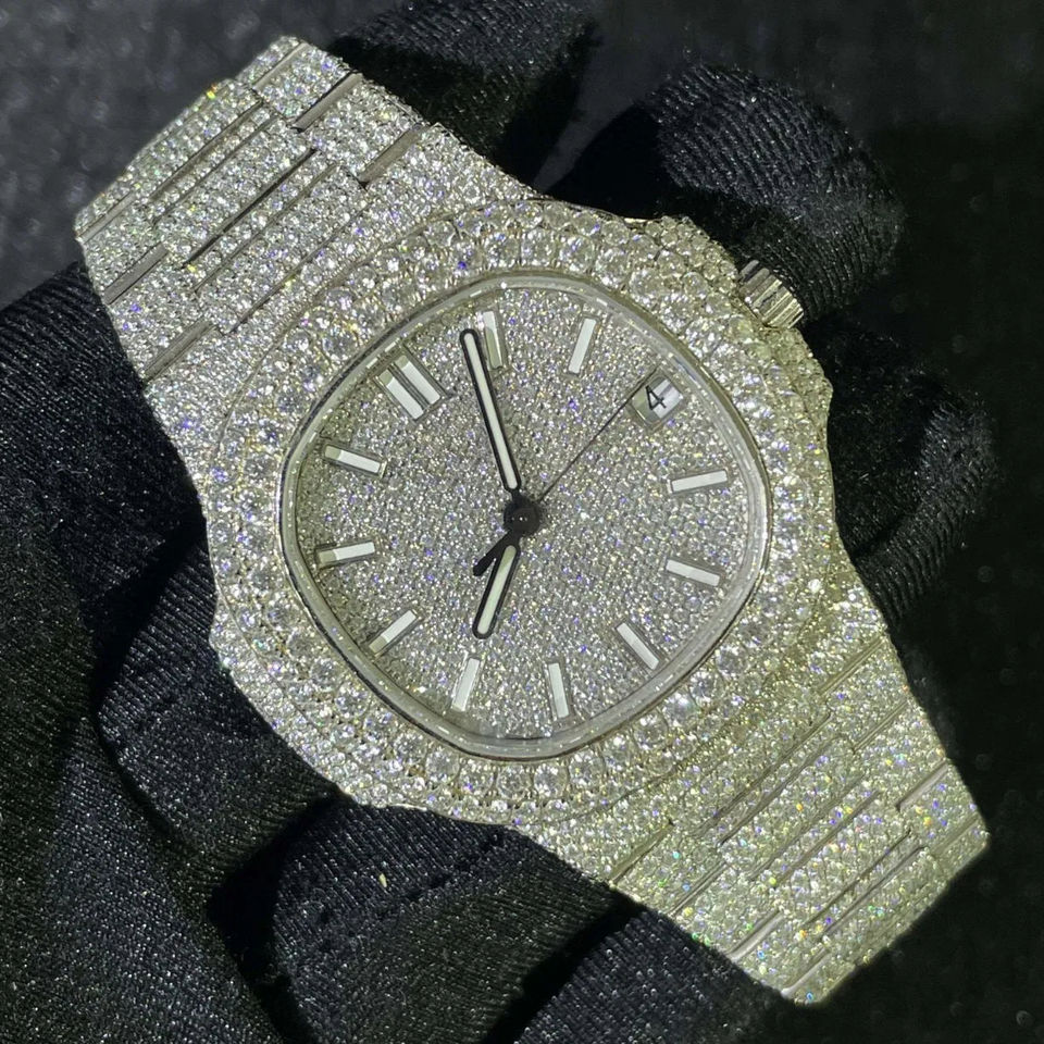 Orologio Automatico Meccanico di Lusso in Acciaio Inossidabile di Alta Qualità con Quadrante a Lancette, Allarme, Design Subacqueo Hip Hop e Moissanite