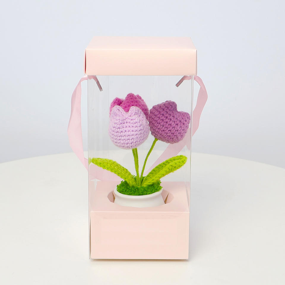 Di alta qualità tessuto manuale uncinetto fiore di simulazione tulipano piccolo vaso di auto decorazione dell'ufficio per natale Halloween regalo di compleanno