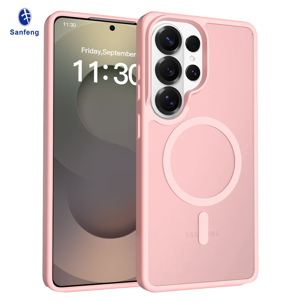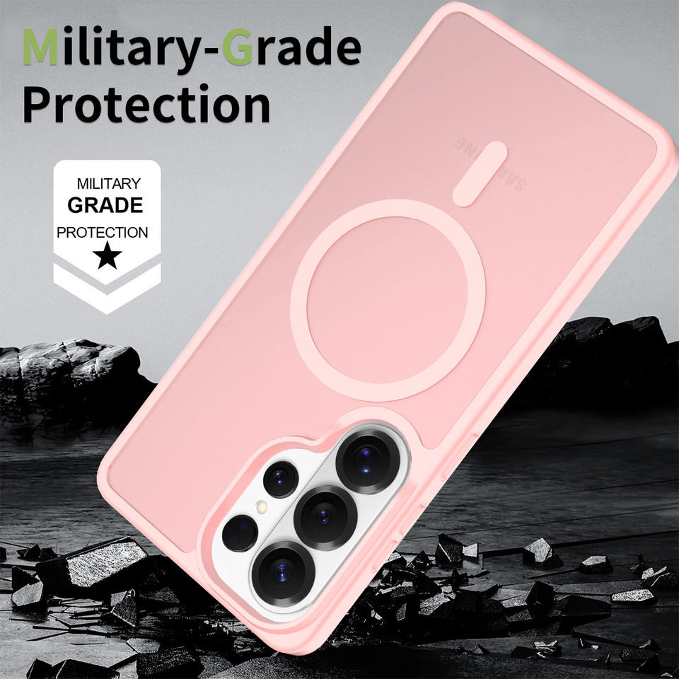 Custodia Magnetica per Cellulare di Alta Qualità con Finitura Opaca Effetto Pelle Rosa per Ragazze Cover per Samsung S22 S23 S24 S25 S26 Ultra