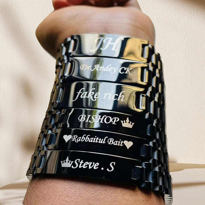 High Quality Men Gold Bracelet Luxury Stainless Steel Curved Bracelet OEM Carve Writing Strap Metal Bracelet With Engraving Bar