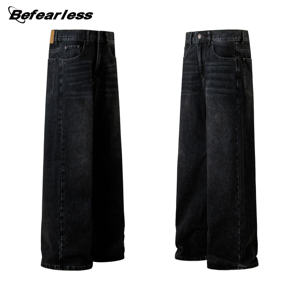 Pantaloni lunghi Jeans dritti da uomo di alta qualità stile Vintage lavati pantaloni Jeans Casual a gamba dritta da uomo di alta qualità