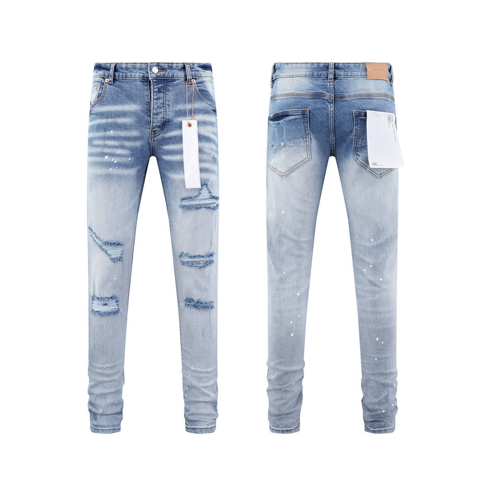 Jeans Slim Vintage Strappati di Alta Qualità per Uomo, Pantaloni Blu in Denim Effetto Vissuto