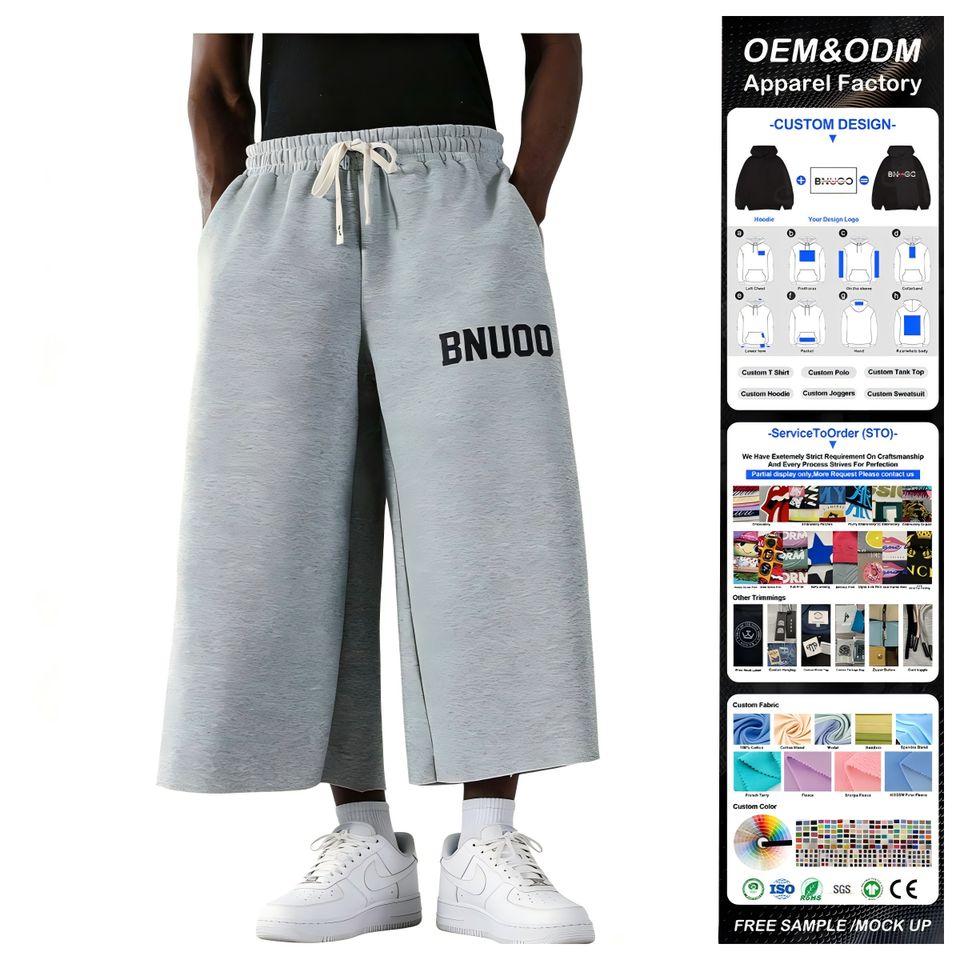 Pantaloni Capri da Uomo di Alta Qualità con Grafiche, 100% Cotone French Terry, Gamba Larga Oversize, Stile Streetwear