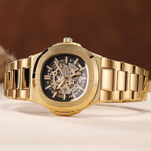 High Quality Men's Light Fashion Inlaid Diamond Watches with Gold Hollow Out Design, Fully Automatic Mechanical Watch