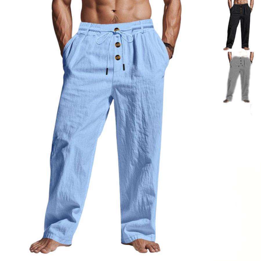 Pantaloni Sportivi da Uomo in Lino di Alta Qualità, Lunghi, Traspiranti, Comodi per l'Autunno, a Vita Media, Gamba Dritta, Impermeabili, Antistatici