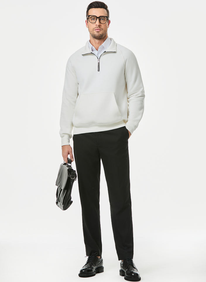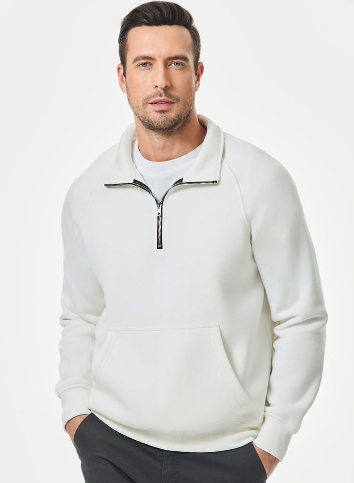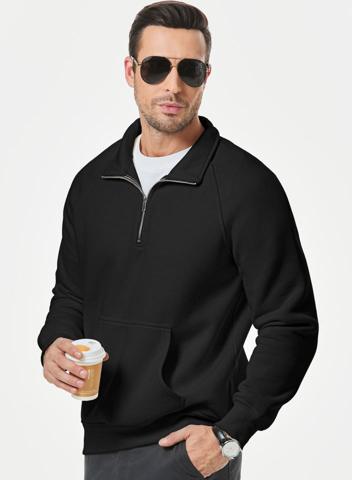 Felpa da Uomo di Alta Qualità con Zip a un Quarto, in Pile, Tinta Unita, con Tasche, Ideale per l'Inverno